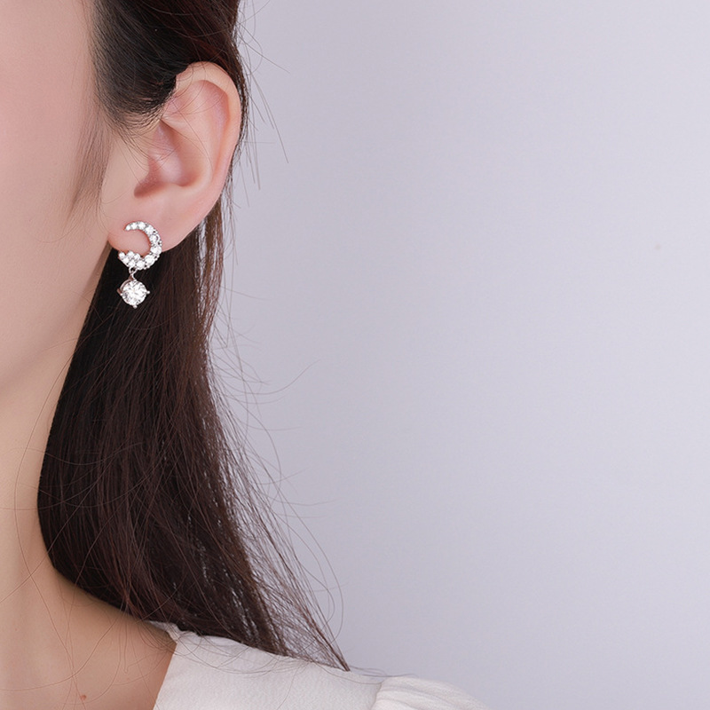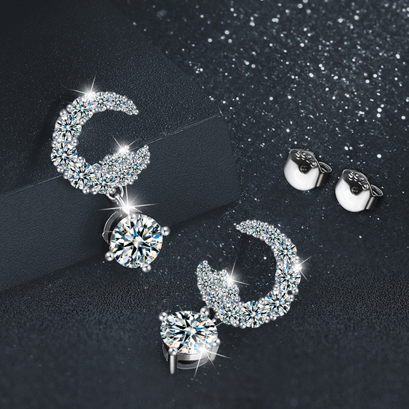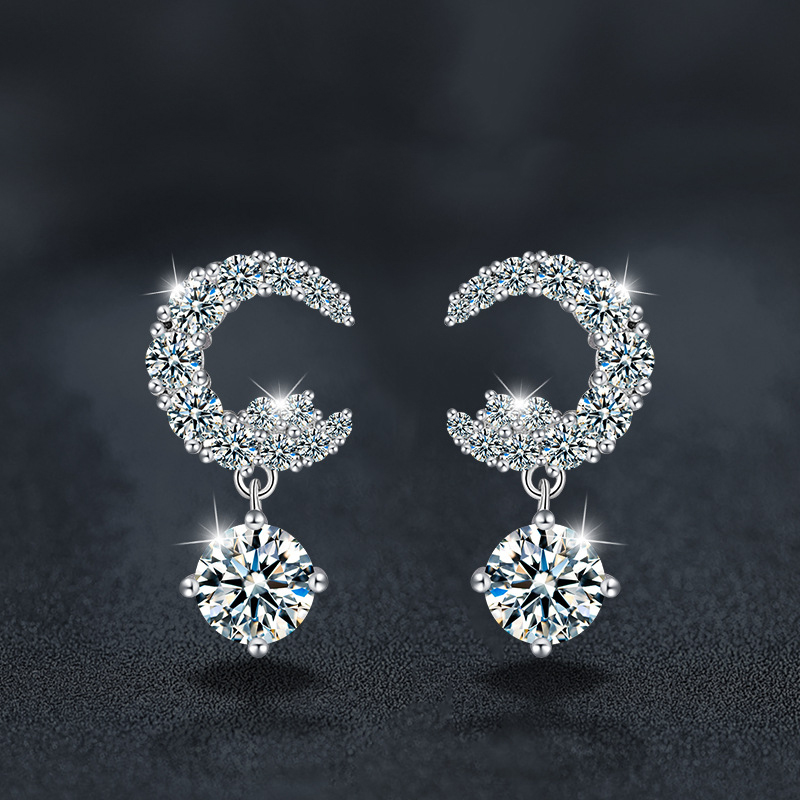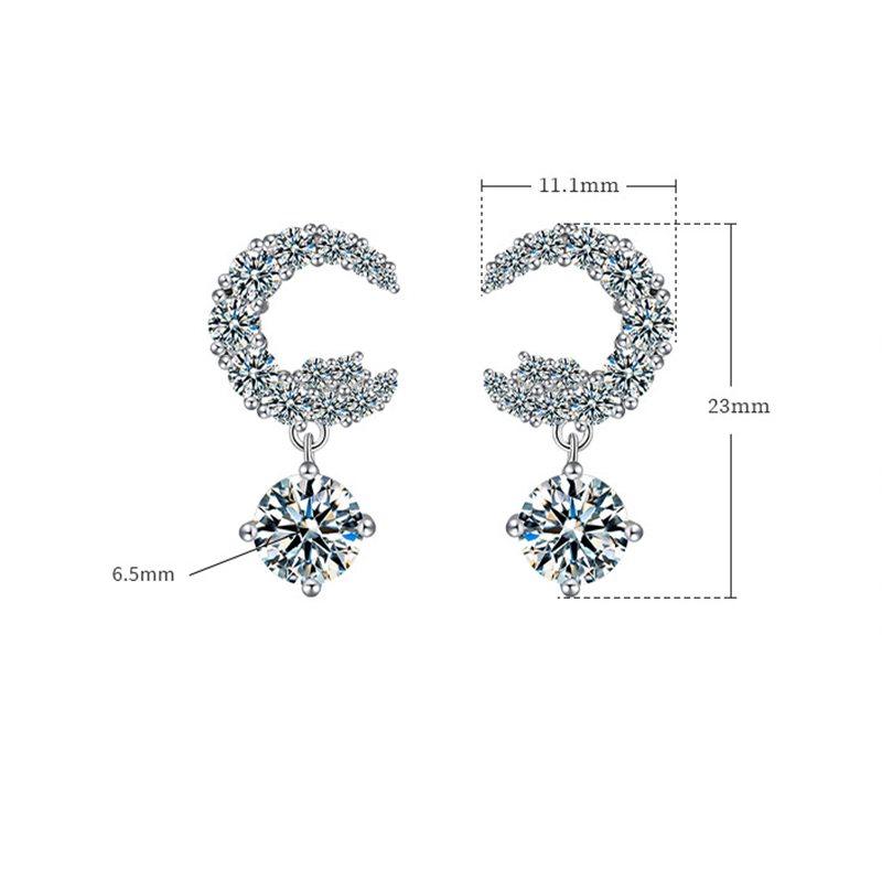 925 Sterling Silver Drop Earring, with Moissanite, Moon, fashion jewelry & for woman, more colors for choice, 11.1x23mm, Sold By Pair