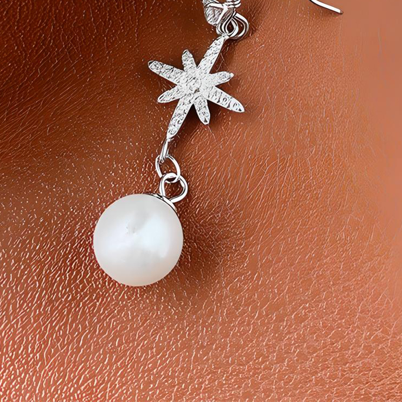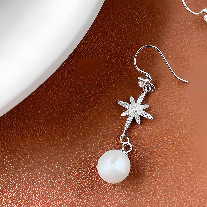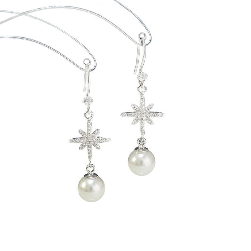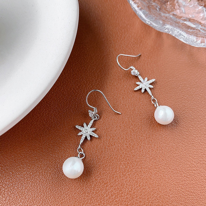 925 Sterling Silver Drop Earring, with Plastic Pearl, Eight Point Star, fashion jewelry & for woman & with rhinestone, 50mm, Sold By Pair