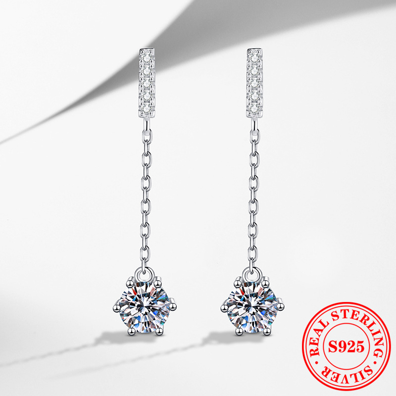 925 Sterling Silver Drop Earring, platinum plated, different materials for choice & micro pave cubic zirconia & for woman, 8x37mm, Sold By Pair