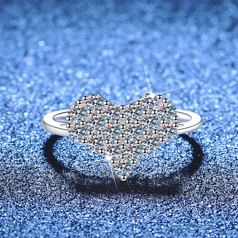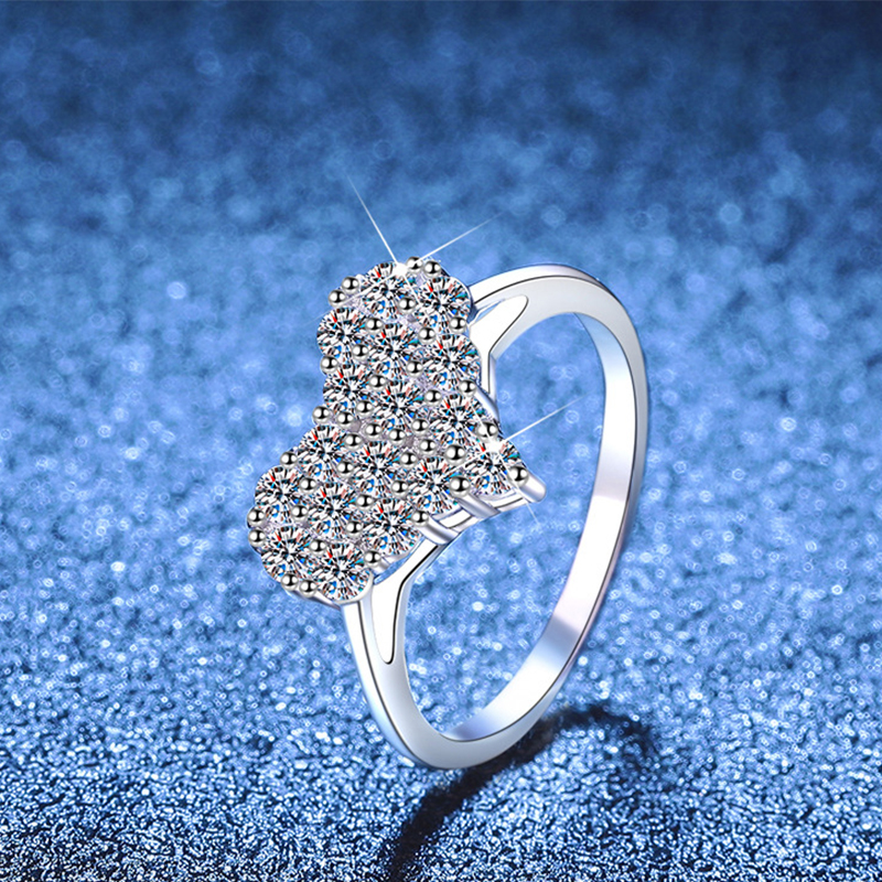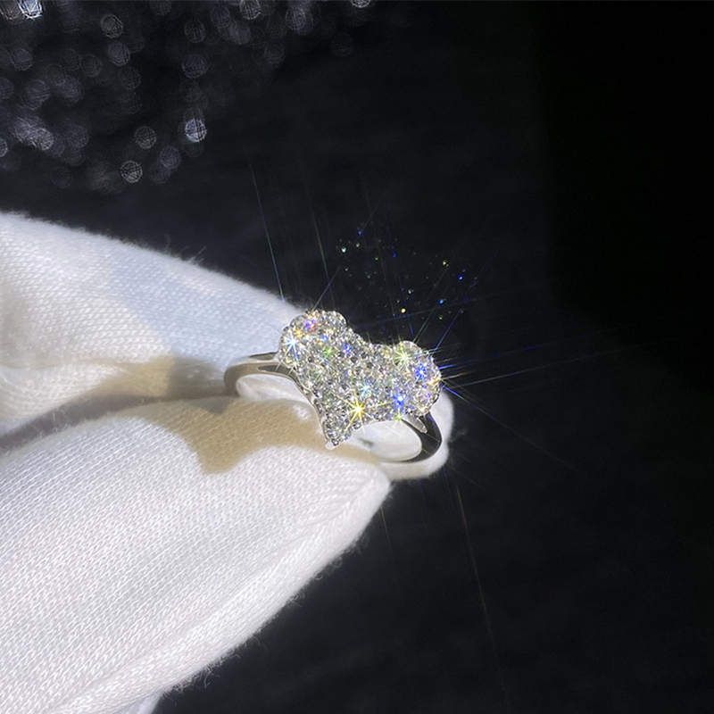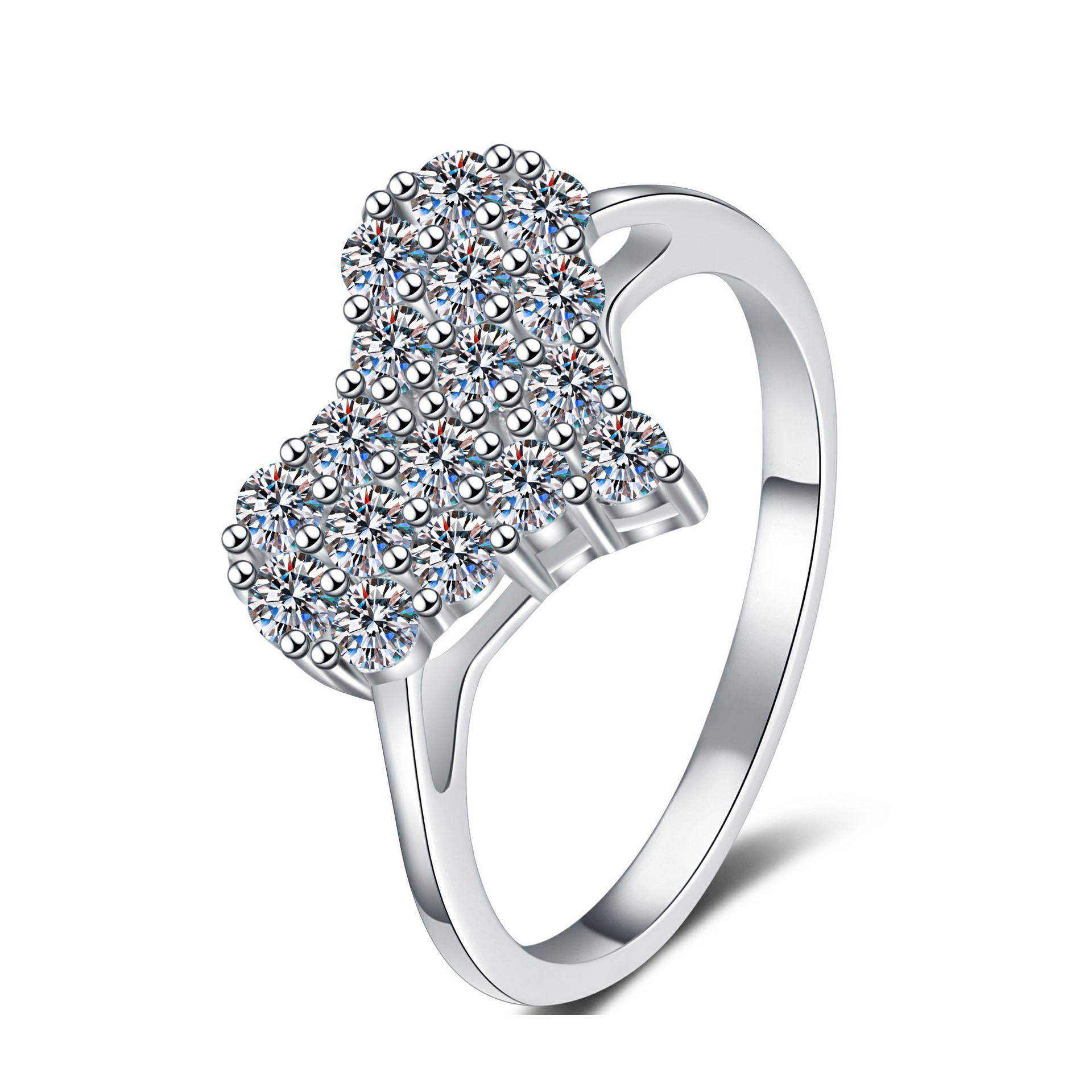 925 Sterling Silver Finger Ring, with Moissanite, Heart, platinum plated, different size for choice & for woman, US Ring Size:4.5-9, Sold By PC