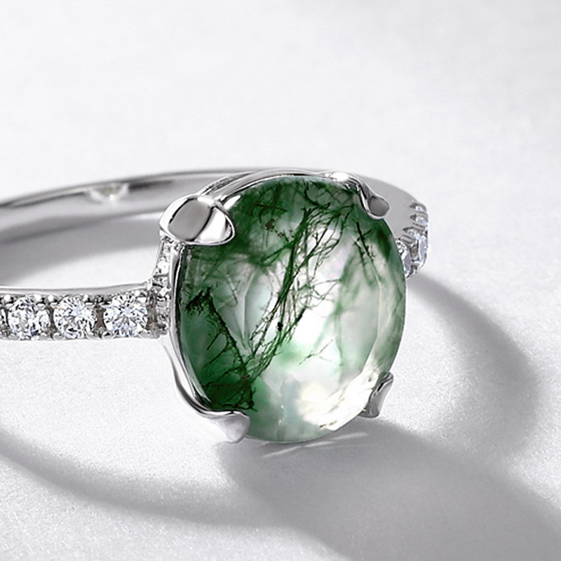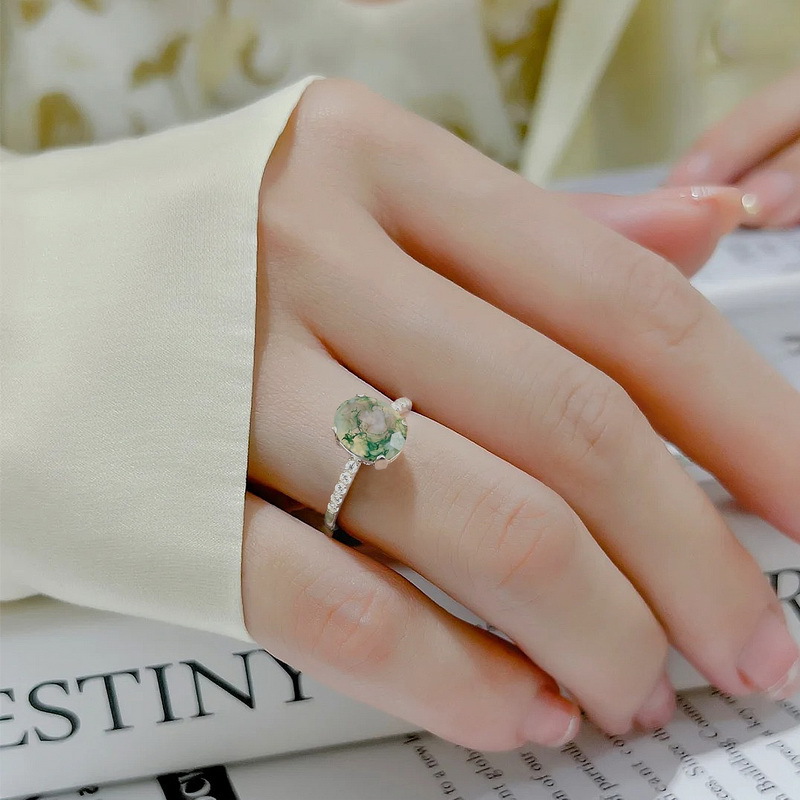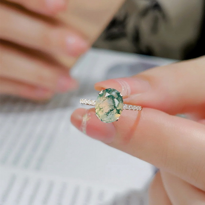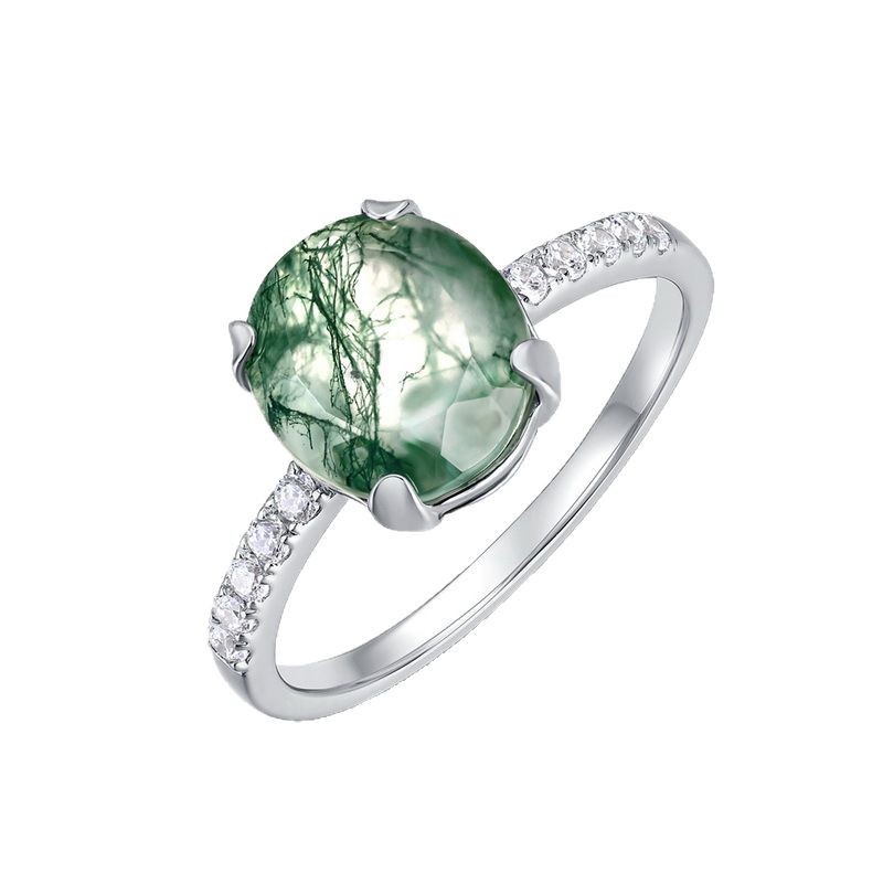 925 Sterling Silver Finger Ring, with Moss Agate, Oval, platinum plated, different size for choice & for woman & with rhinestone, US Ring Size:6-8, Sold By PC