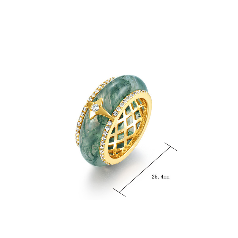 925 Sterling Silver Finger Ring, with Moss Agate, gold color plated, different size for choice & for woman & with rhinestone, US Ring Size:6.5-7.5, Sold By PC