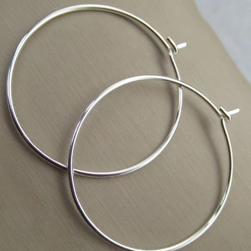 Sterling Silver Hoop Earring Component, 925 Sterling Silver, Donut, plated 37mm Approx 0.5mm