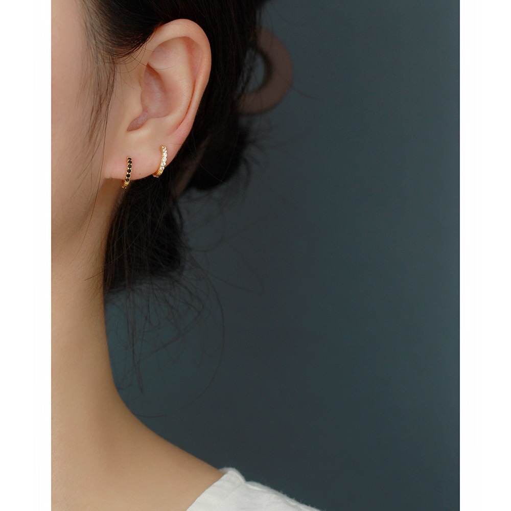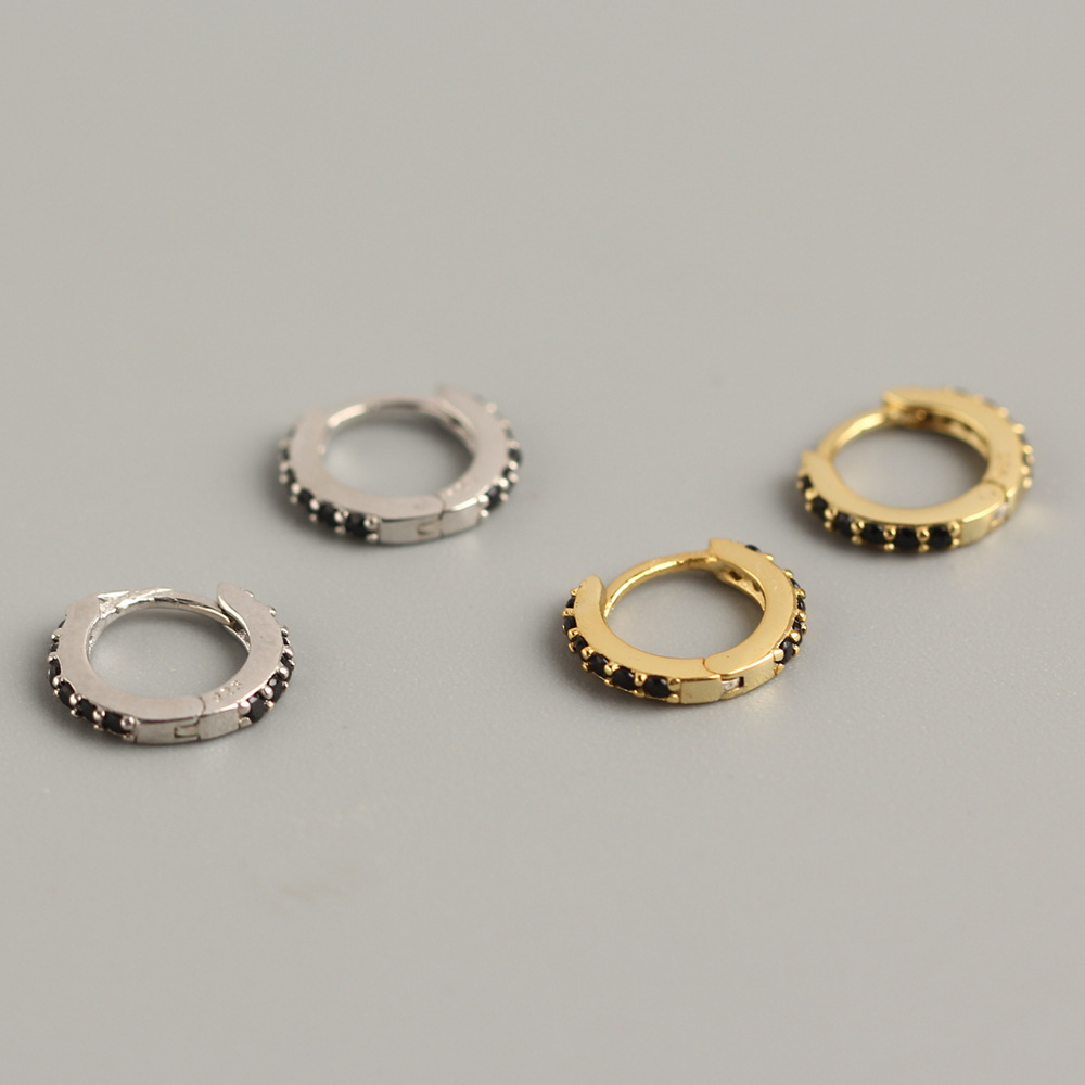 925 Sterling Silver Huggie Hoop Earring, for woman & with rhinestone, more colors for choice, Inner Diameter:Approx 7mm, Sold By Pair