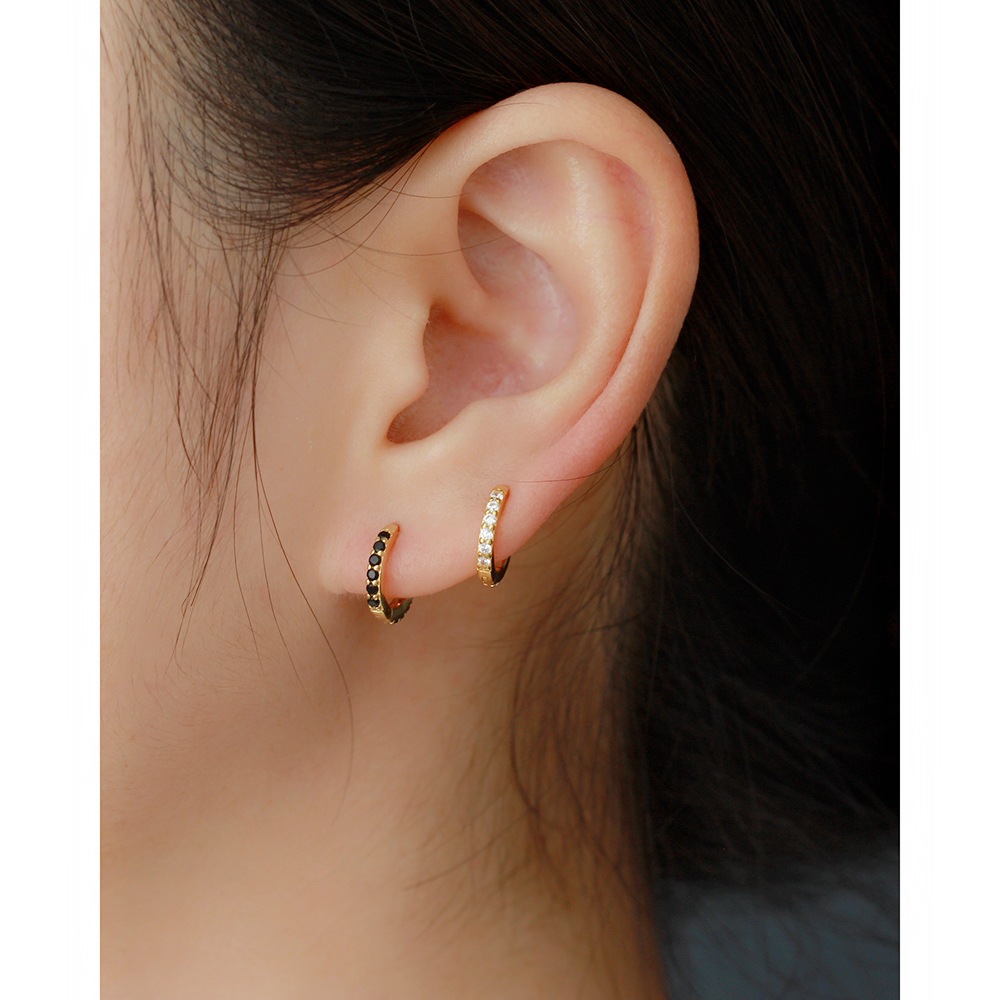 Sterling Silver Huggie Hoop Earring, 925 Sterling Silver, sterling silver hoop earring, plated, with cubic zirconia 5mm
