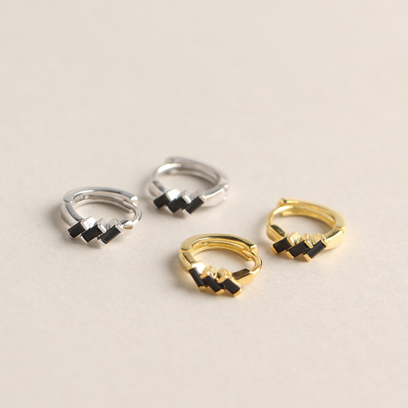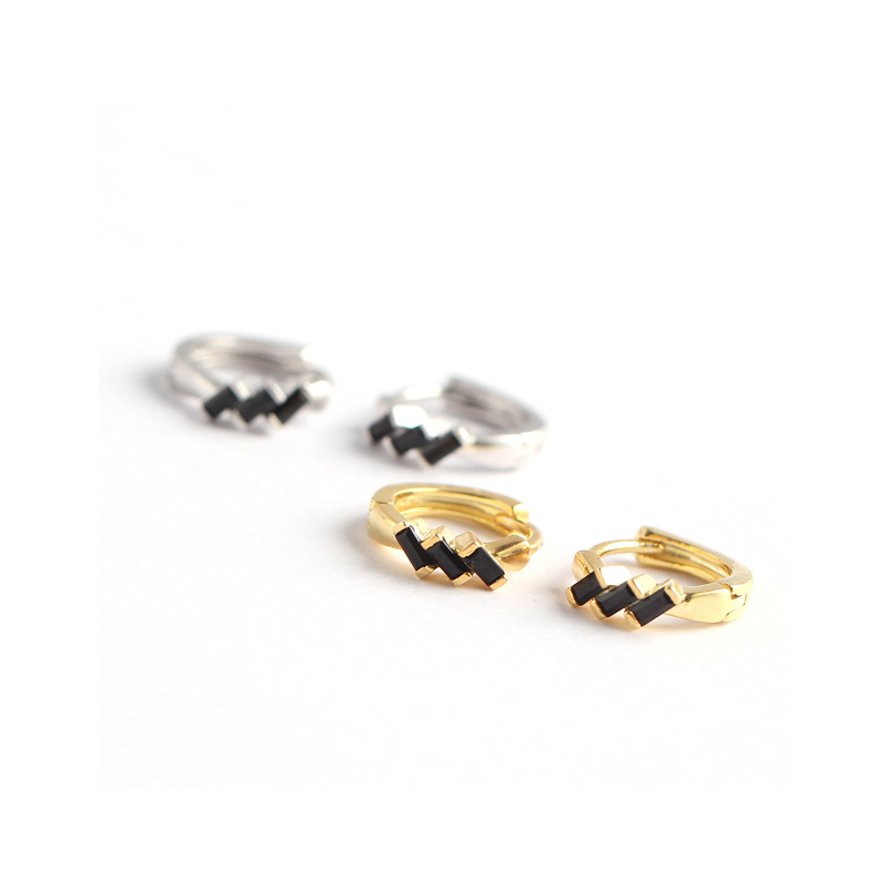 Sterling Silver Huggie Hoop Earring, 925 Sterling Silver, sterling silver earring lever back clip, plated, with cubic zirconia