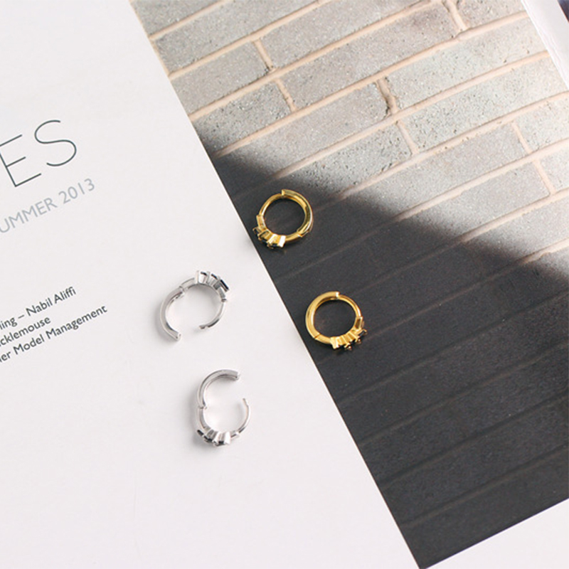 Sterling Silver Huggie Hoop Earring, 925 Sterling Silver, sterling silver hoop earring, plated, with cubic zirconia 5mm