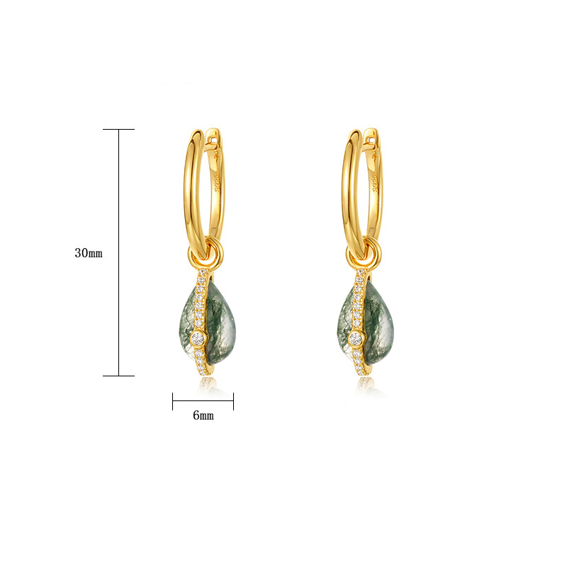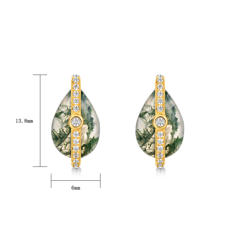 925 Sterling Silver Jewelry Set, with Moss Agate, Teardrop, gold color plated, different styles for choice & for woman & with rhinestone, Sold By PC