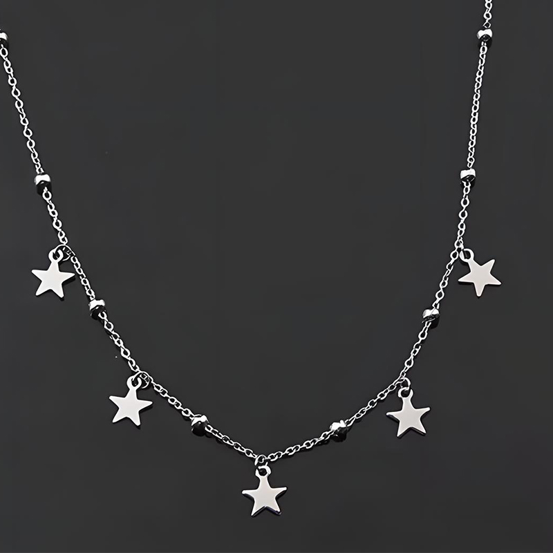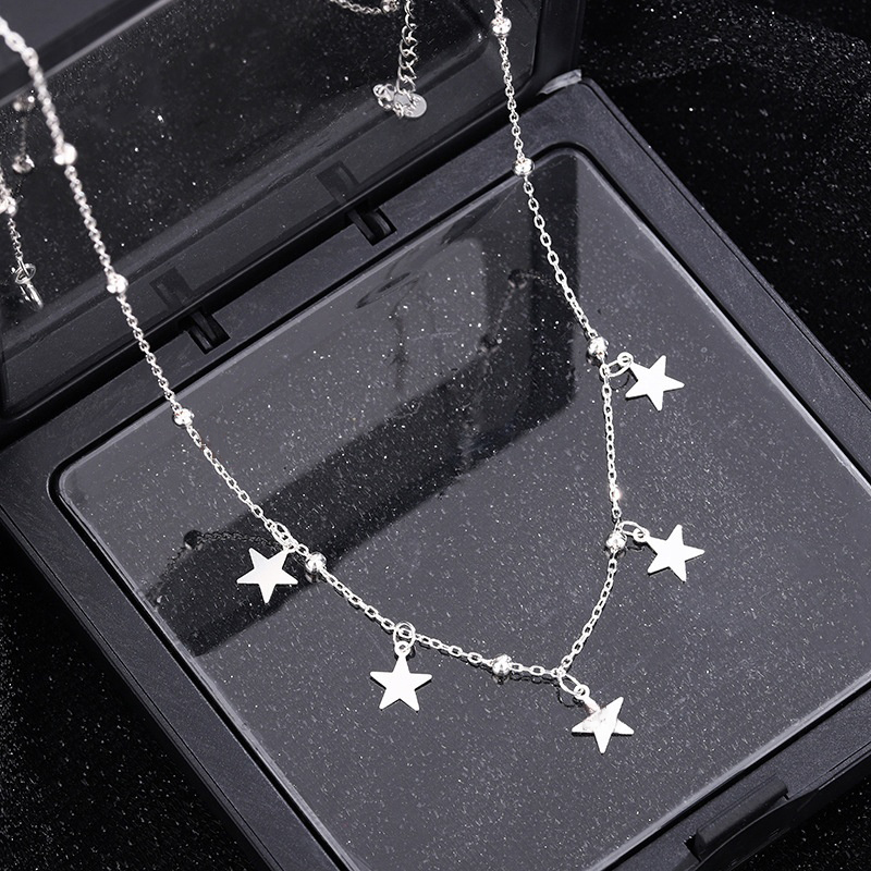 925 Sterling Silver Necklace, with 2inch extender chain, Star, fashion jewelry & for woman, silver color, Length:Approx 15.7 Inch, Sold By PC