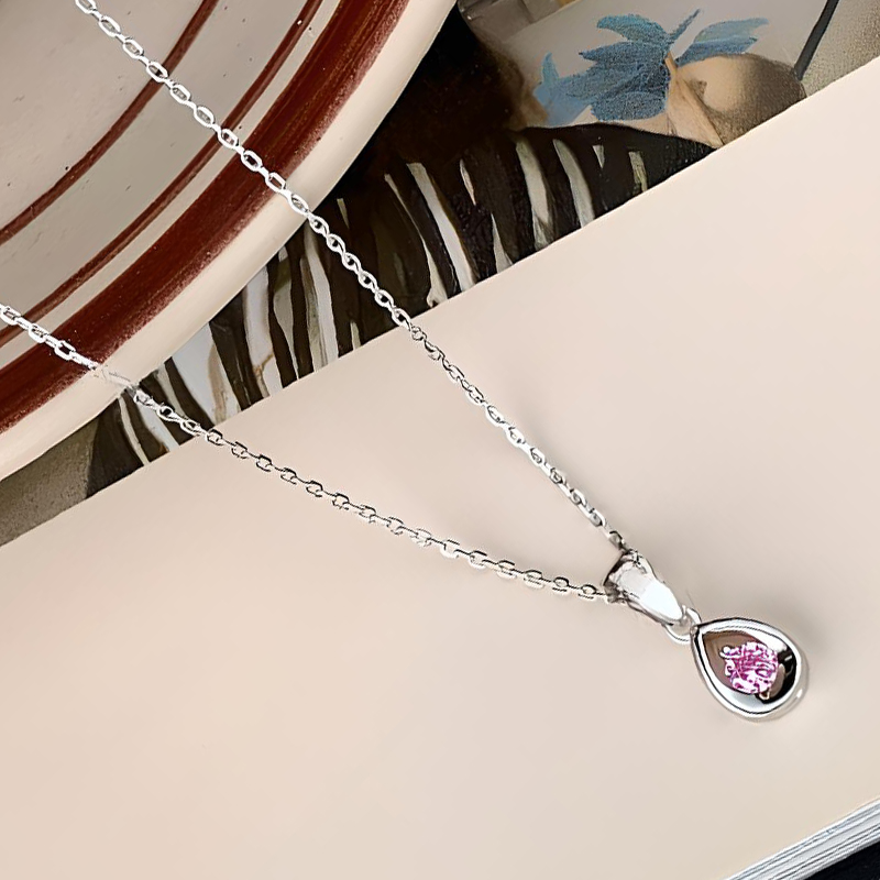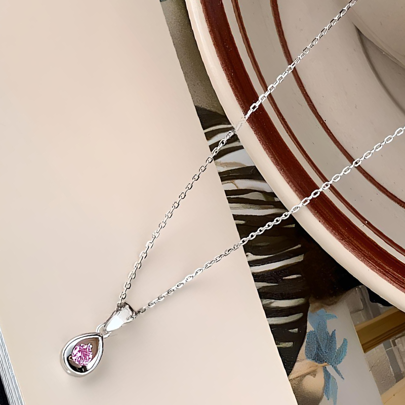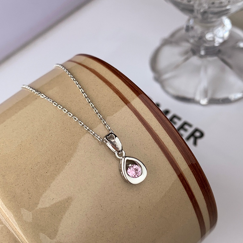 925 Sterling Silver Necklace, with 2inch extender chain, Teardrop, platinum plated, cross chain & micro pave cubic zirconia & for woman, Length:Approx 15.7 Inch, Sold By PC