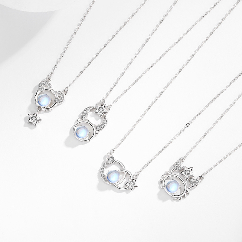 925 Sterling Silver Necklace, with Lampwork, with 2inch extender chain, 12 Signs of the Zodiac, different styles for choice & micro pave cubic zirconia & for woman, Length:Approx 15.7 Inch, Sold By PC