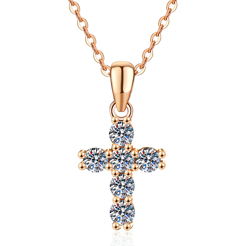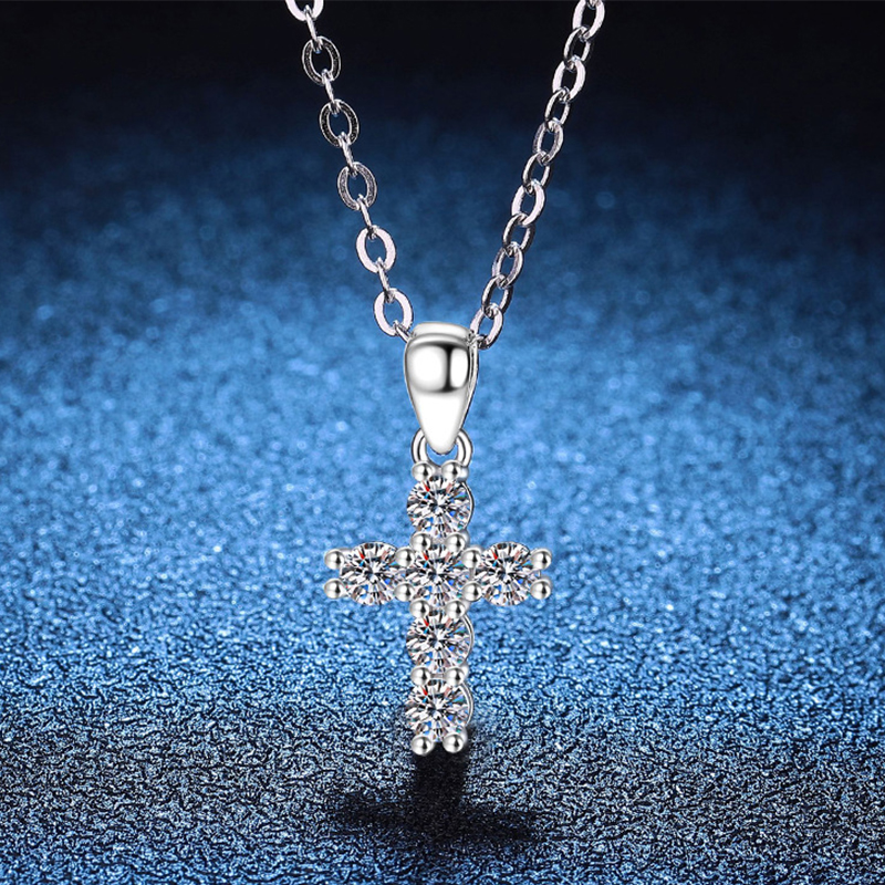 925 Sterling Silver Necklace, with Moissanite, with 2inch extender chain, Cross, cross chain & for woman, more colors for choice, Length:Approx 15.7 Inch, Sold By PC