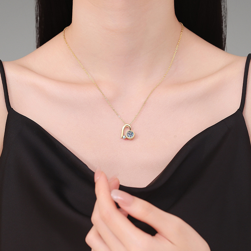 925 Sterling Silver Necklace, with Moissanite, with 2inch extender chain, Heart, cross chain & for woman, more colors for choice, Length:Approx 15.7 Inch, Sold By PC