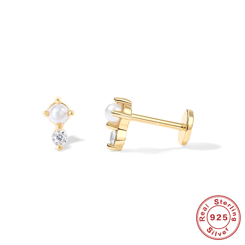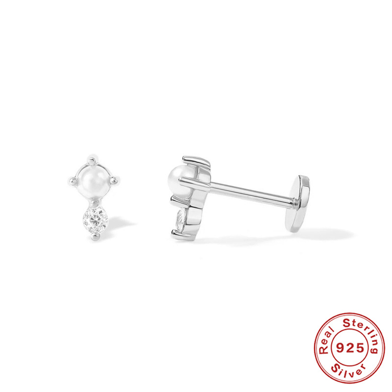 925 Sterling Silver Piercing Earring, different styles for choice & micro pave cubic zirconia & for woman, 6mm, Sold By PC