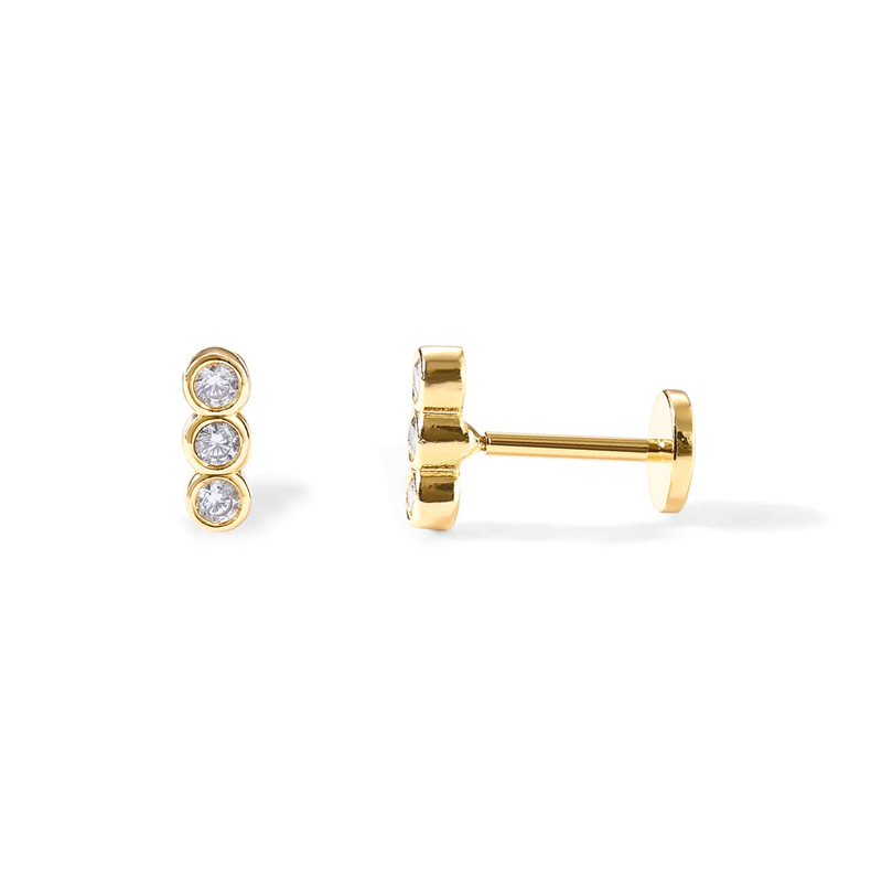 Sterling Silver Stud Earring, 925 Sterling Silver, sterling silver post pin, Flat Round, plated, with cubic zirconia