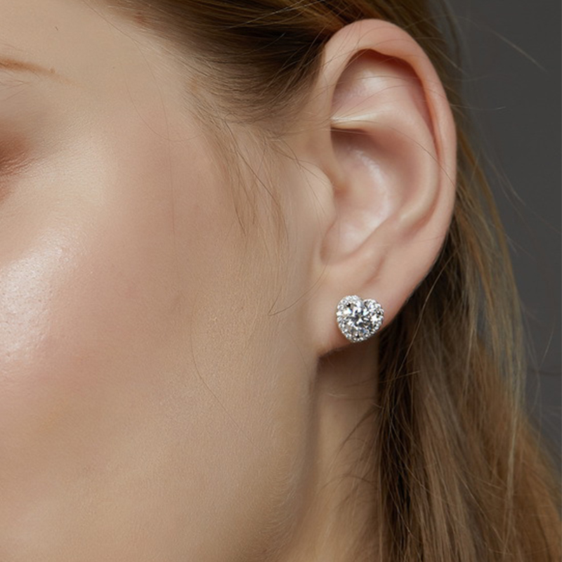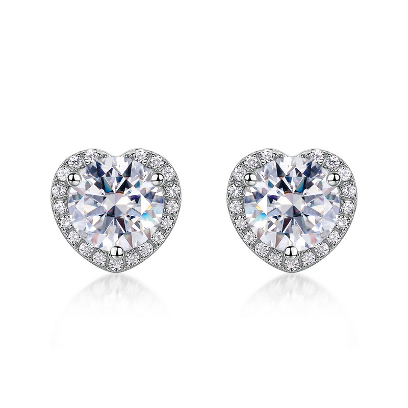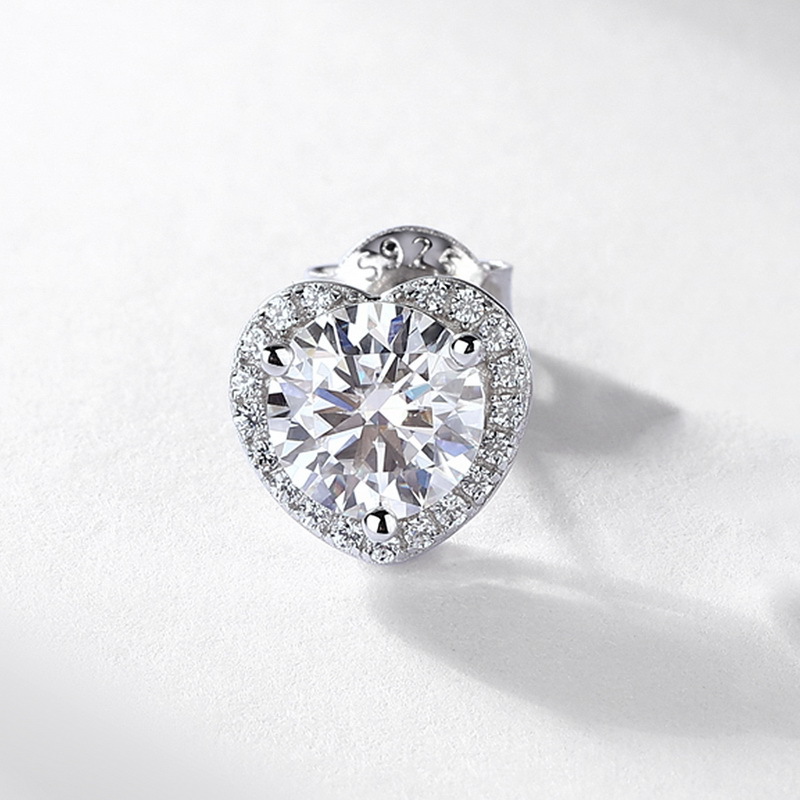 925 Sterling Silver Stud Earring, with Moissanite, Heart, platinum plated, for woman & with rhinestone, 8.5mm, Sold By Pair