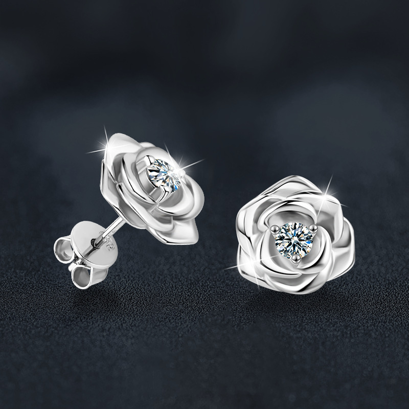 925 Sterling Silver Stud Earring, with Moissanite, Rose, fashion jewelry & for woman, more colors for choice, 9.25x10.25mm, Sold By Pair