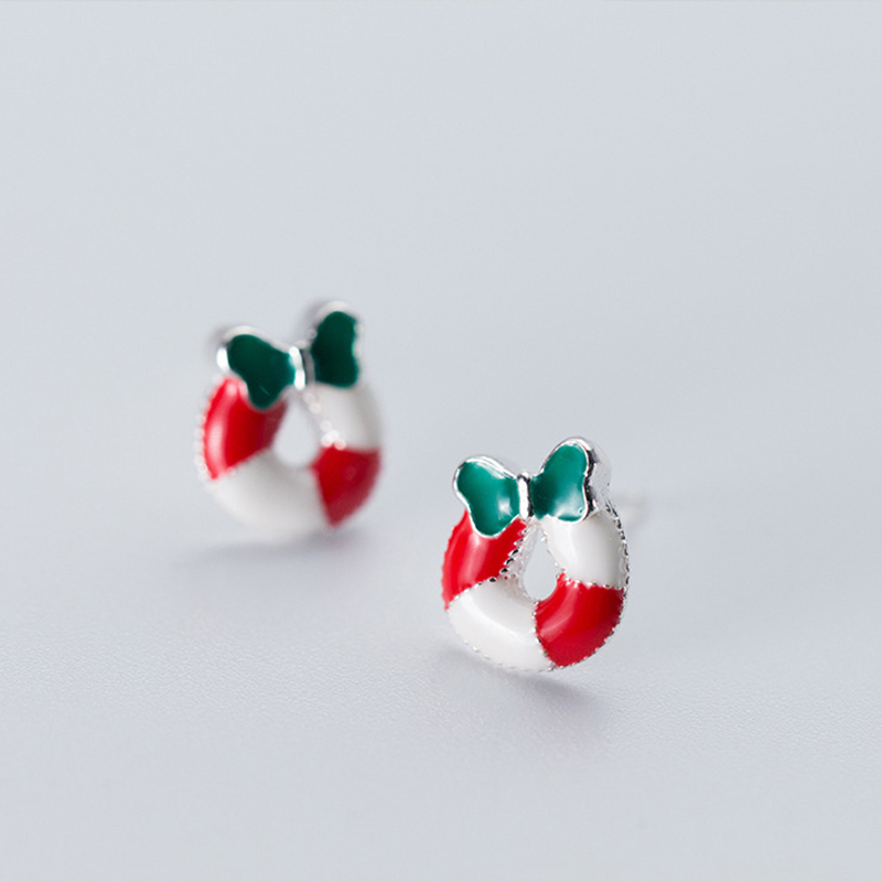 925 Sterling Silver Stud Earring, Christmas jewelry & different styles for choice & for woman & enamel & with rhinestone, Sold By Pair