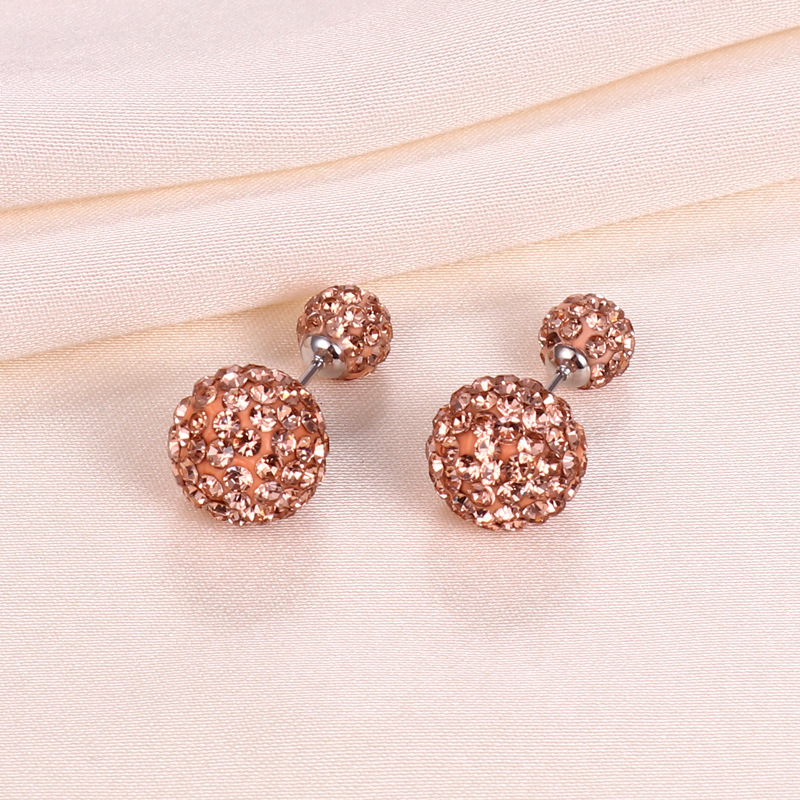 Sterling Silver Stud Earring, 925 Sterling Silver, with Rhinestone Clay Pave Bead, Round, with Czech rhinestone 12mm