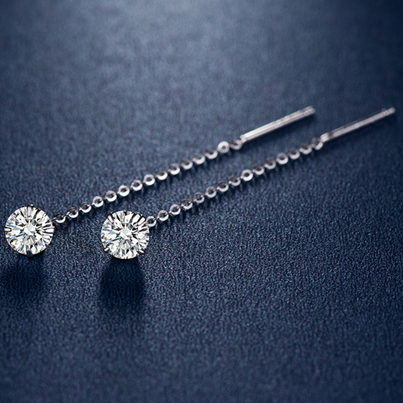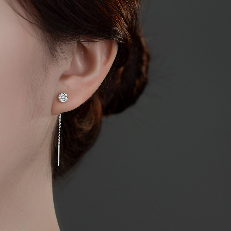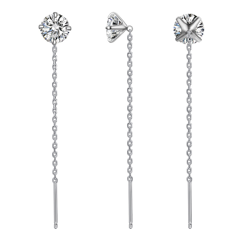 925 Sterling Silver Thread Through Earrings, with Moissanite, different size for choice & for woman, 40mm, Sold By Pair