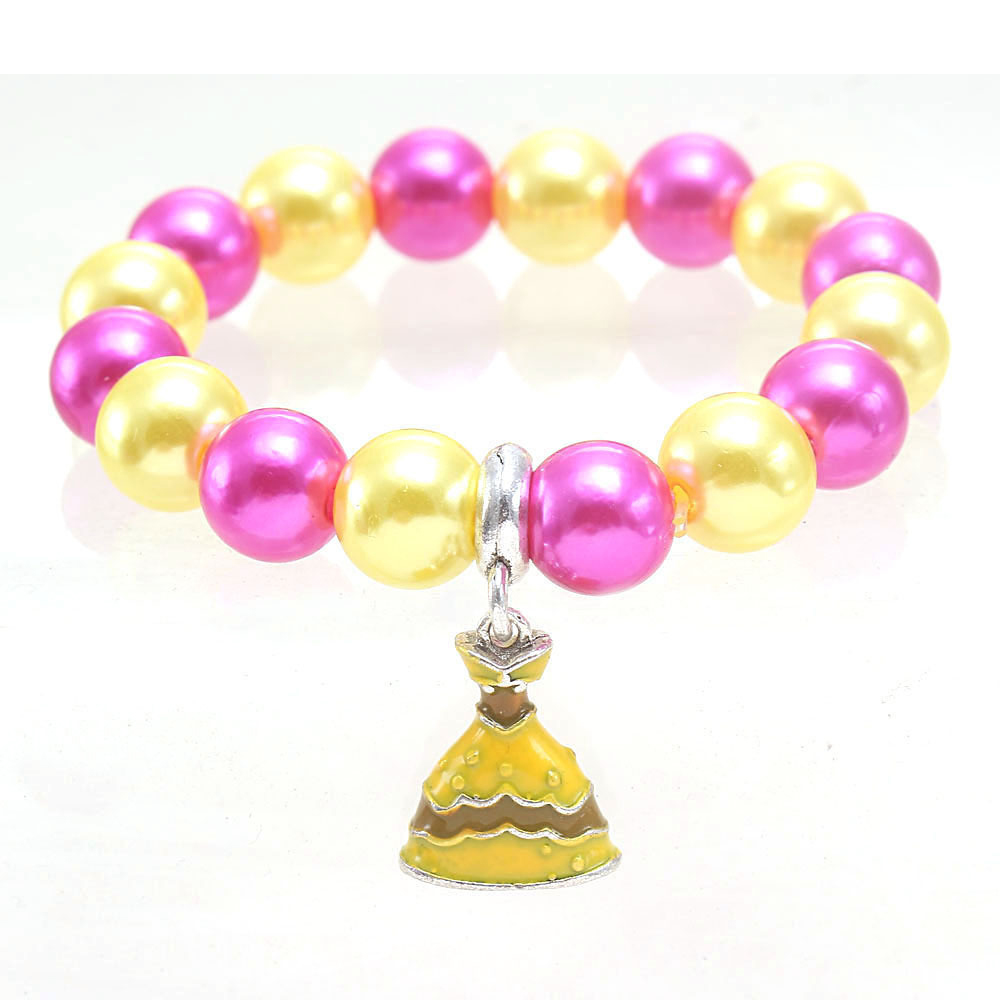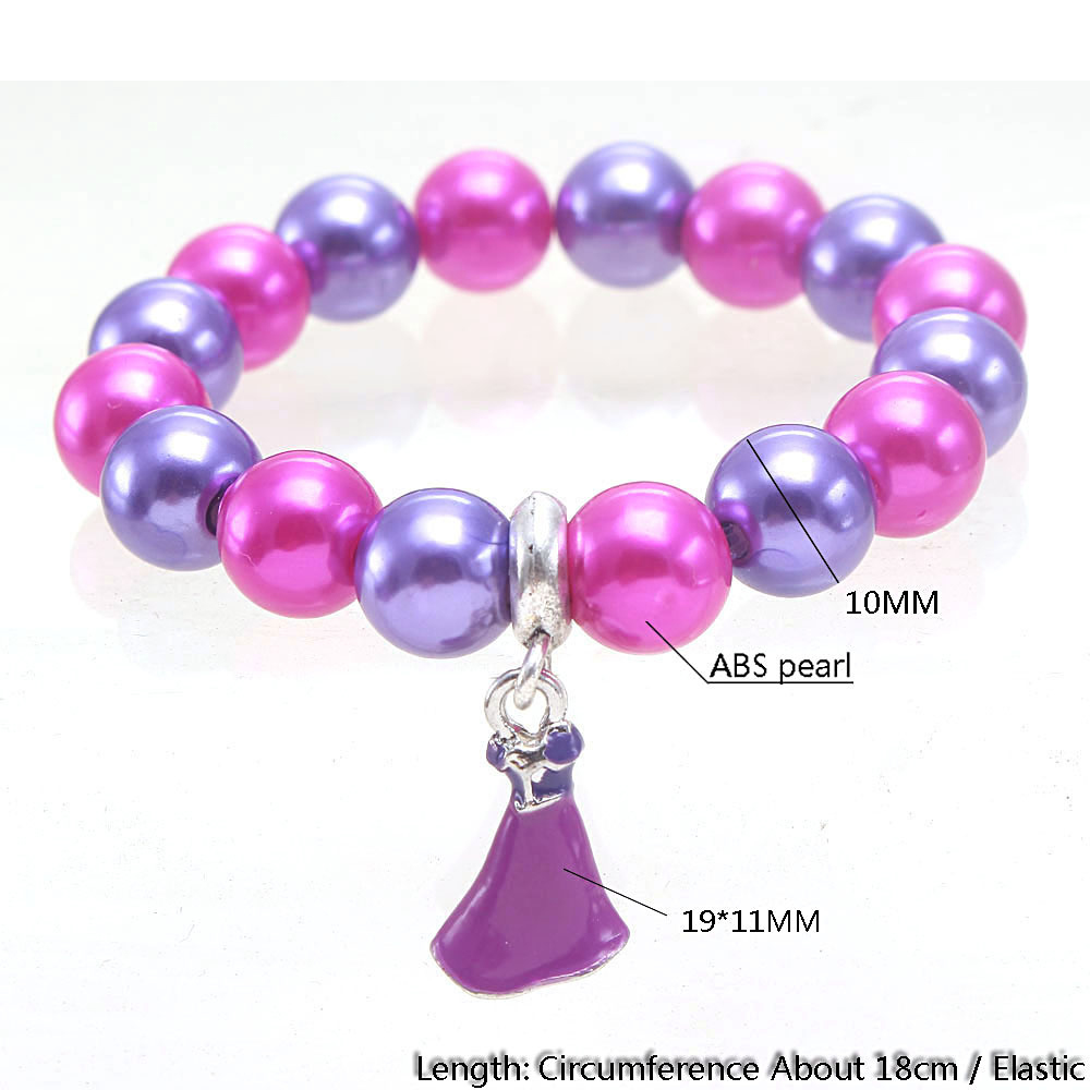 ABS Plastic Pearl Bracelet, with Zinc Alloy, Skirt, Girl & enamel, more colors for choice, Length:Approx 7 Inch, Sold By PC