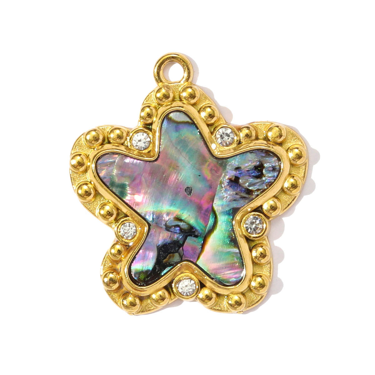 Abalone Shell Pendants, 304 Stainless Steel, with Abalone Shell, gold color plated, DIY & enamel & with rhinestone, more colors for choice, 3PCs/Bag, Sold By Bag