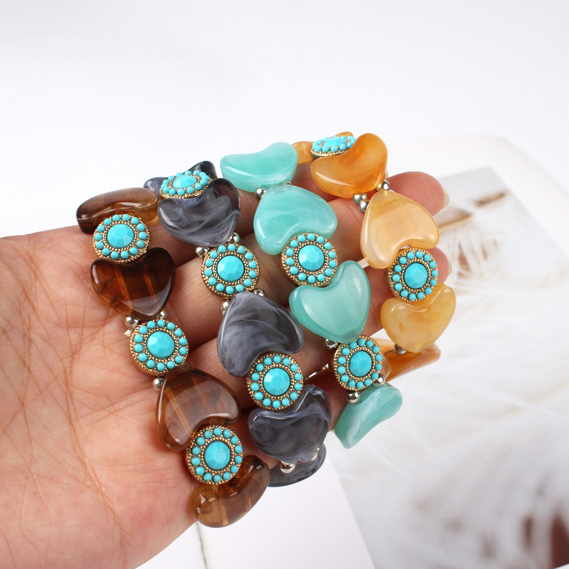 Acrylic Bracelet, with Elastic Thread & Zinc Alloy, polished, fashion jewelry & for woman, more colors for choice, Length:Approx 7.09 Inch, Sold By PC