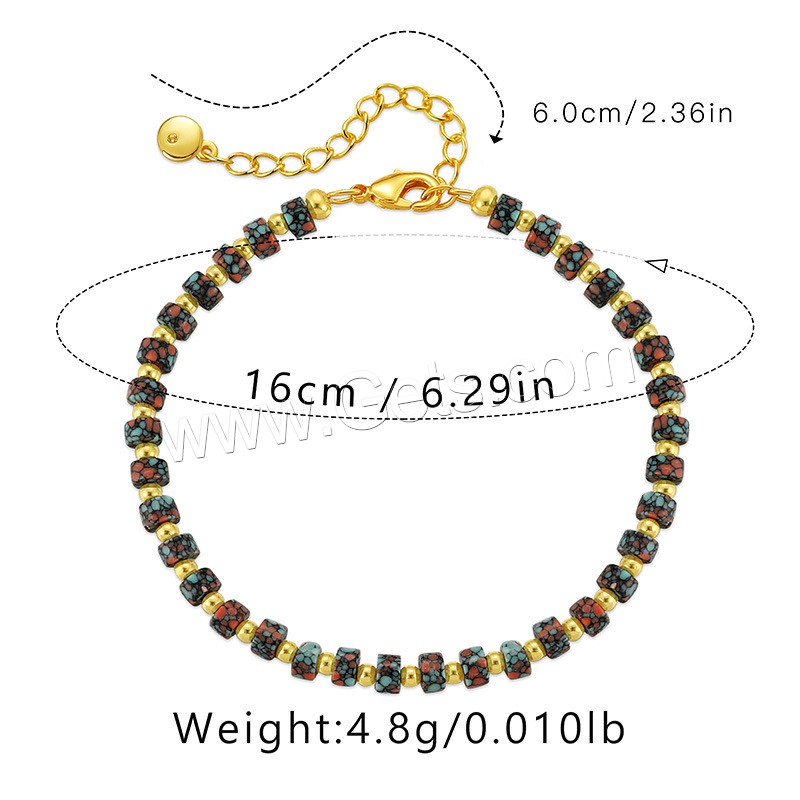Acrylic Bracelets, Brass, with Acrylic, with 2.36inch extender chain, 18K gold plated, fashion jewelry & for woman, golden, Length:Approx 6.29 Inch, Sold By PC