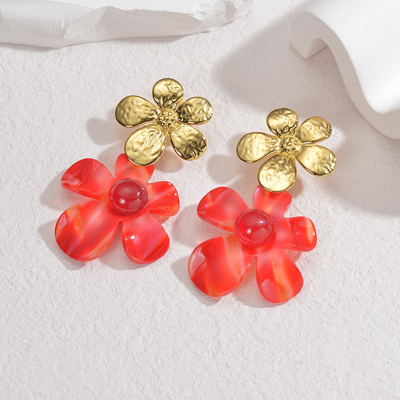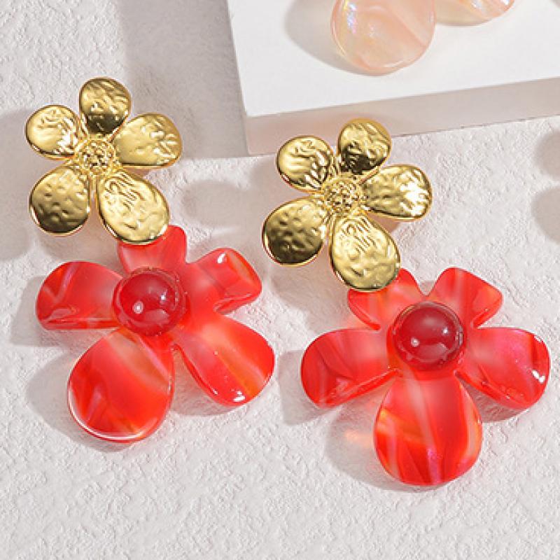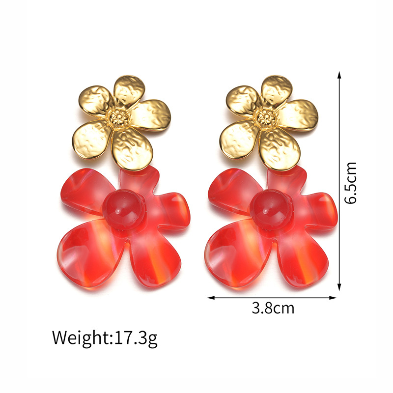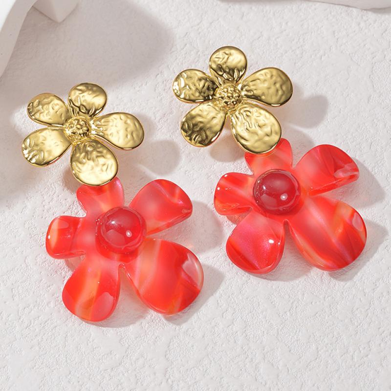 Acrylic Drop Earring, 304 Stainless Steel, with Acrylic, Flower, plated, fashion jewelry & for woman, golden, Sold By Pair
