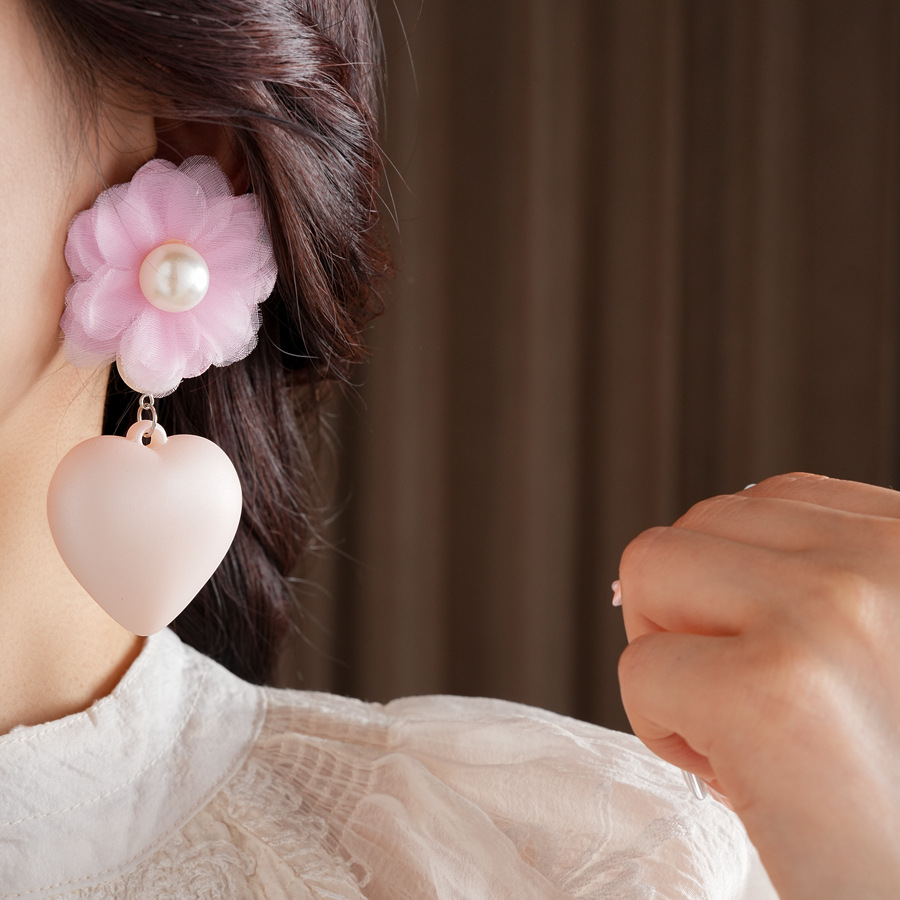 Acrylic Drop Earring, with Chiffon, Heart, different styles for choice & for woman, 40x96mm, Sold By Pair