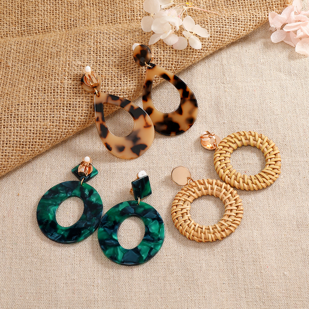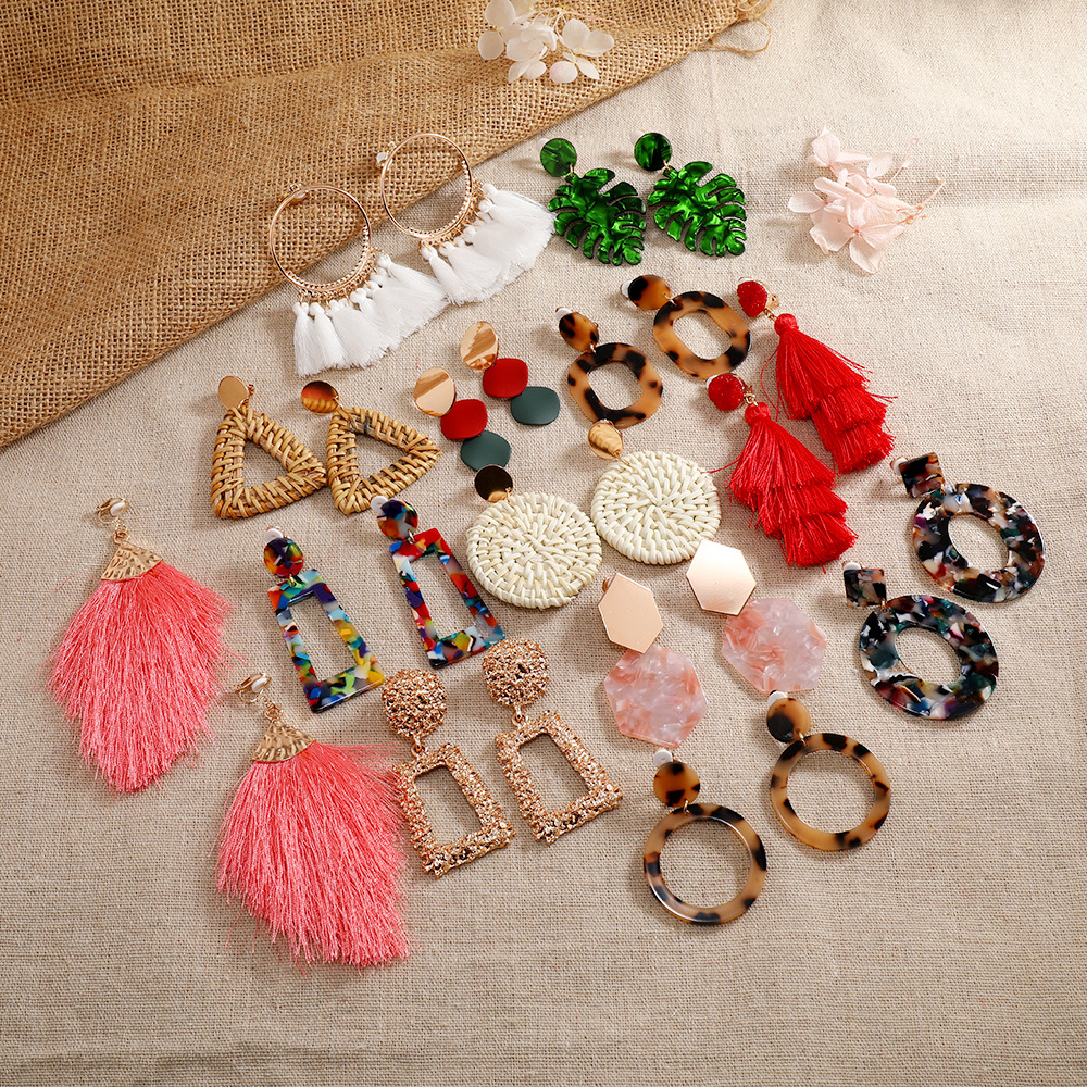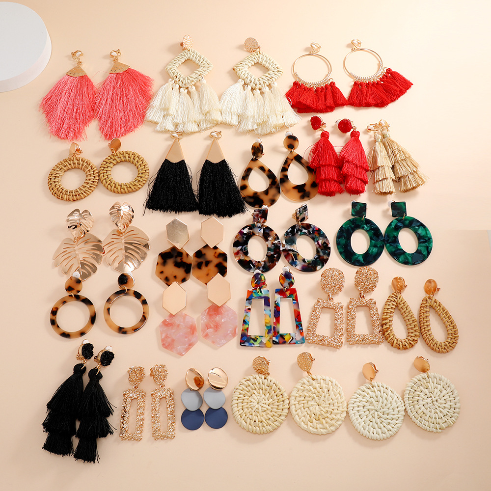Acrylic Drop Earring, with Rattan & Polyester & Zinc Alloy, different styles for choice & for woman, earring length 30-80mm, Sold By Pair