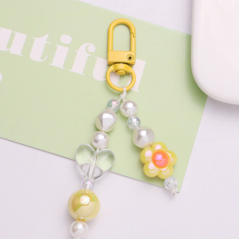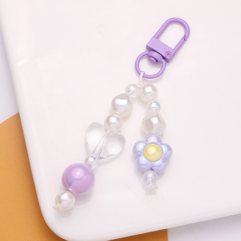 Acrylic Key Chain, with Plastic Pearl, Flower, cute & Unisex, more colors for choice, Sold By PC