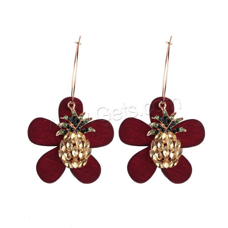 Acrylic Hoop Earring, Zinc Alloy, with Crystal & Acrylic, brass post pin, gold color plated, for woman & with rhinestone, 45x75mm, Sold By Pair
