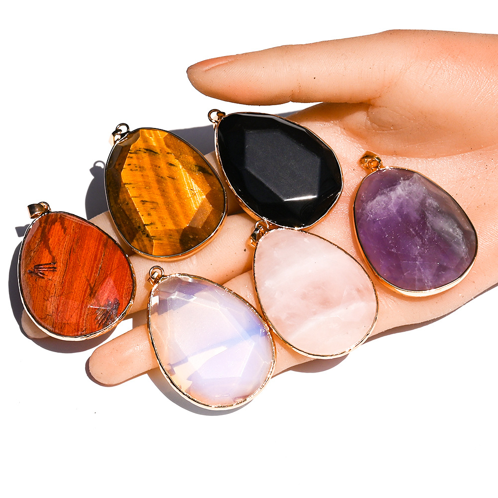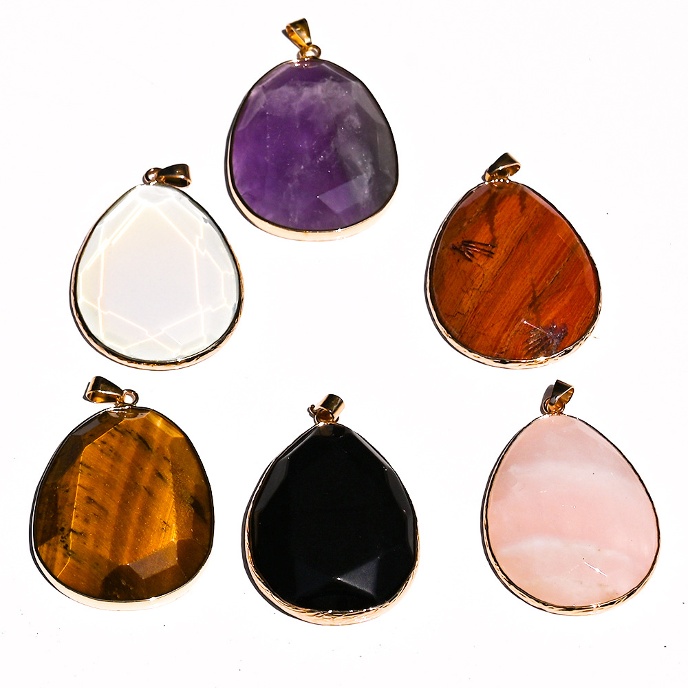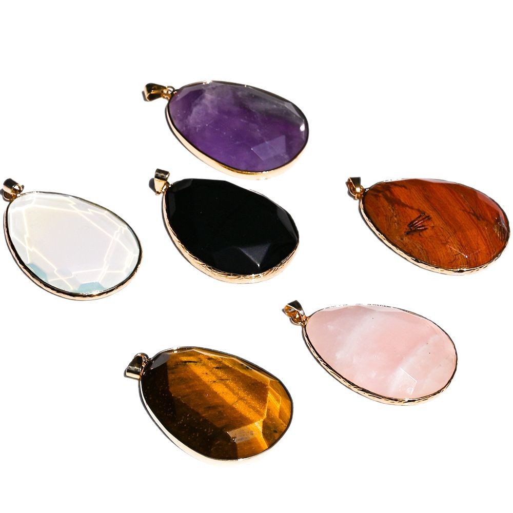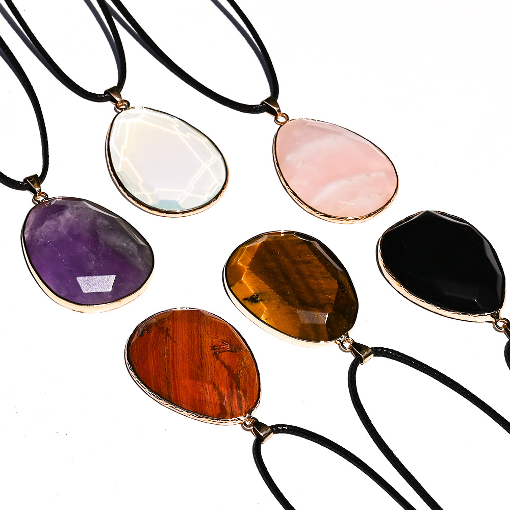 Agate Necklace, with leather cord & Brass, Teardrop, different materials for choice & Unisex, more colors for choice, 35x45x10mm, Sold By PC