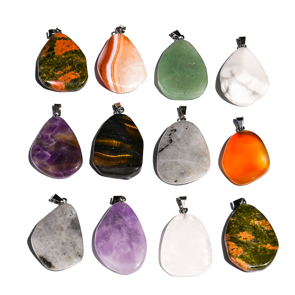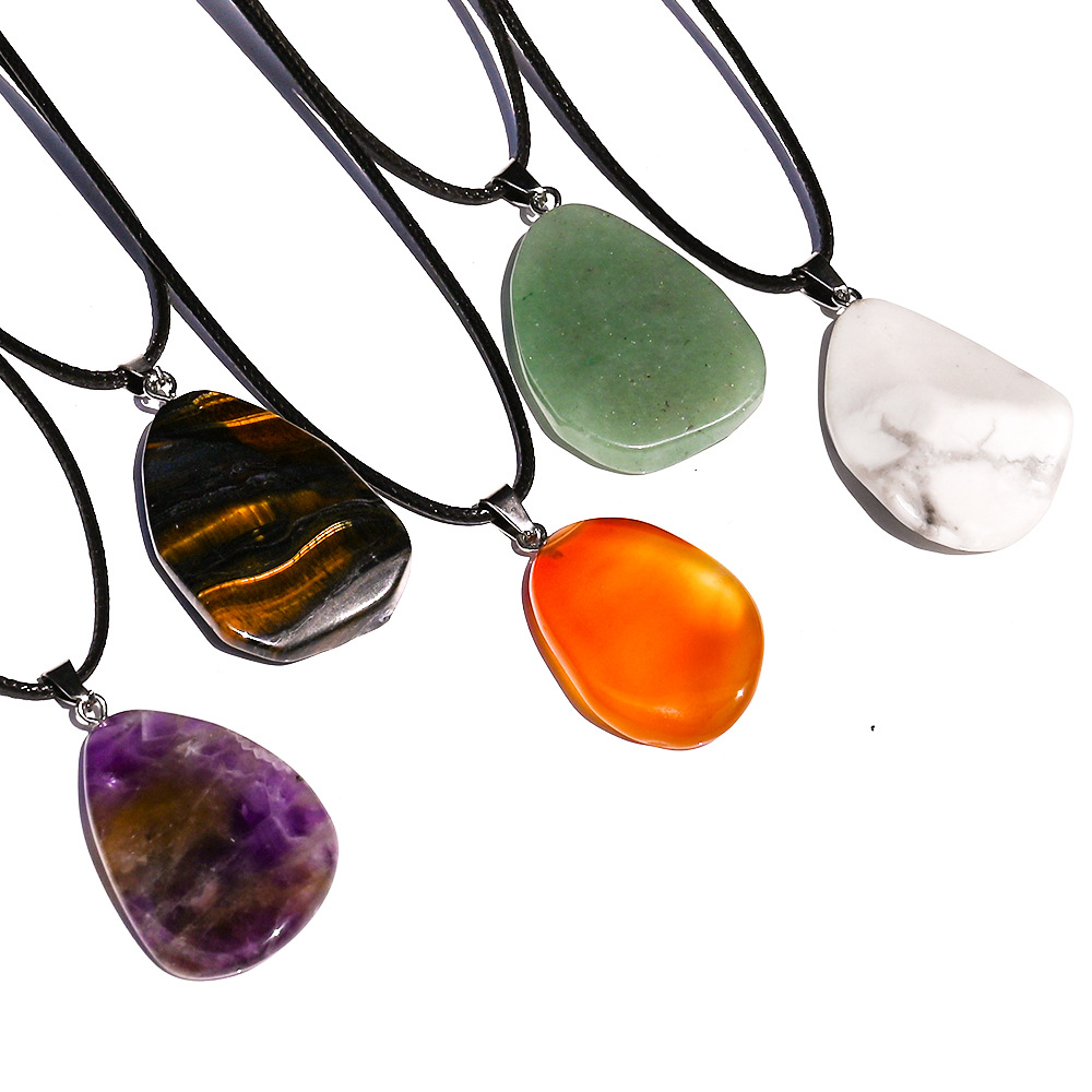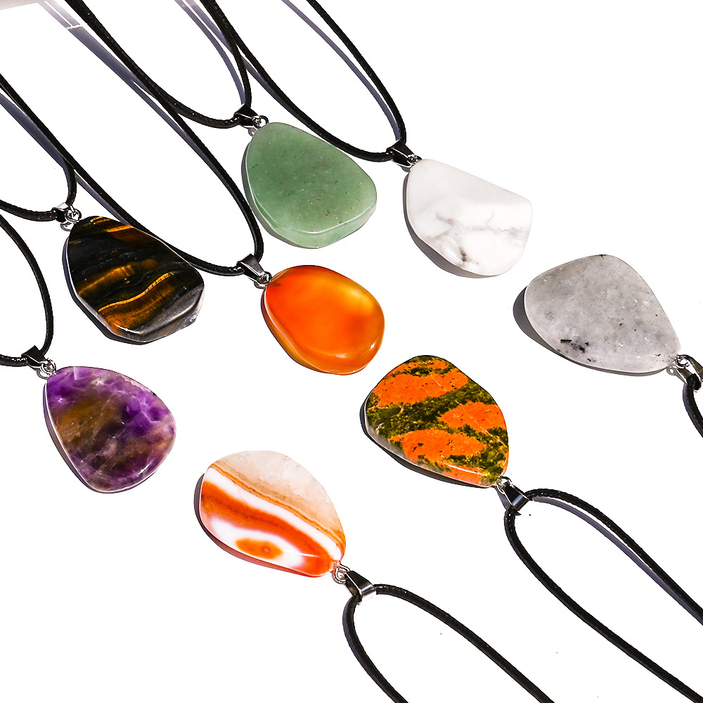 Agate Necklace, with leather cord, Teardrop, different materials for choice & Unisex, more colors for choice, 27x40mm, Sold By PC