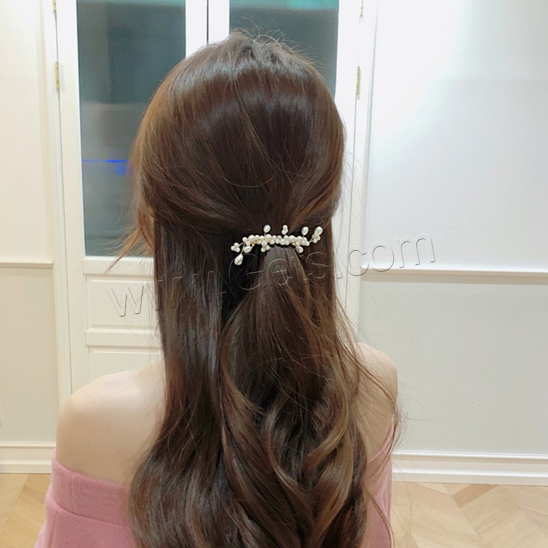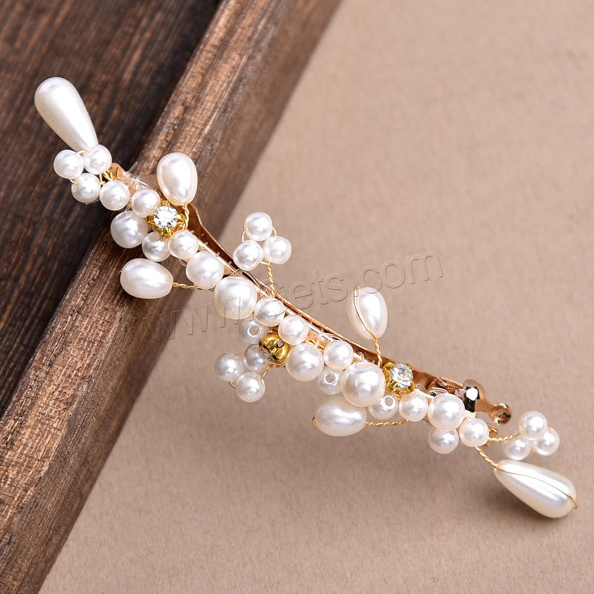 Alligator Hair Clip, Zinc Alloy, with Plastic Pearl, fashion jewelry & for woman & with rhinestone, golden, 90mm, Sold By PC