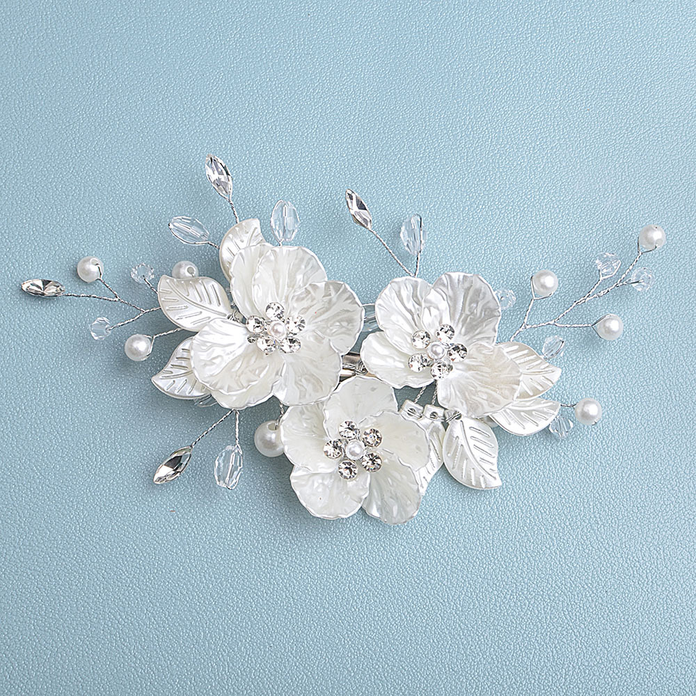 Alligator Hair Clip, Zinc Alloy, with brass wire & Shell & Crystal & Plastic Pearl, handmade, fashion jewelry & for bridal, more colors for choice, 140x50mm, Sold By PC
