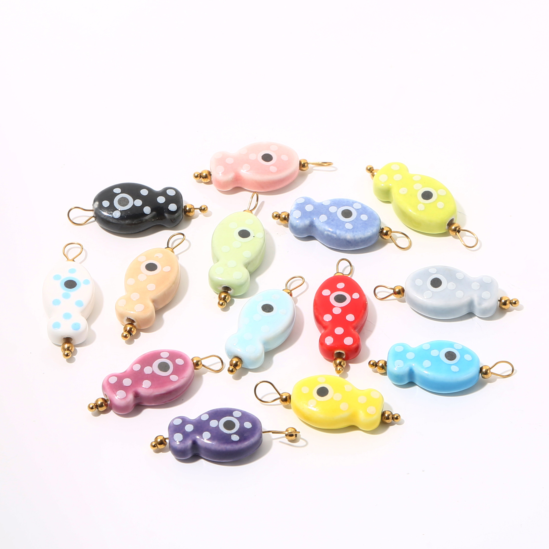 Animal Porcelain Beads, with 304 Stainless Steel, Fish, gold color plated, DIY & enamel, more colors for choice, 10PCs/Bag, Sold By Bag