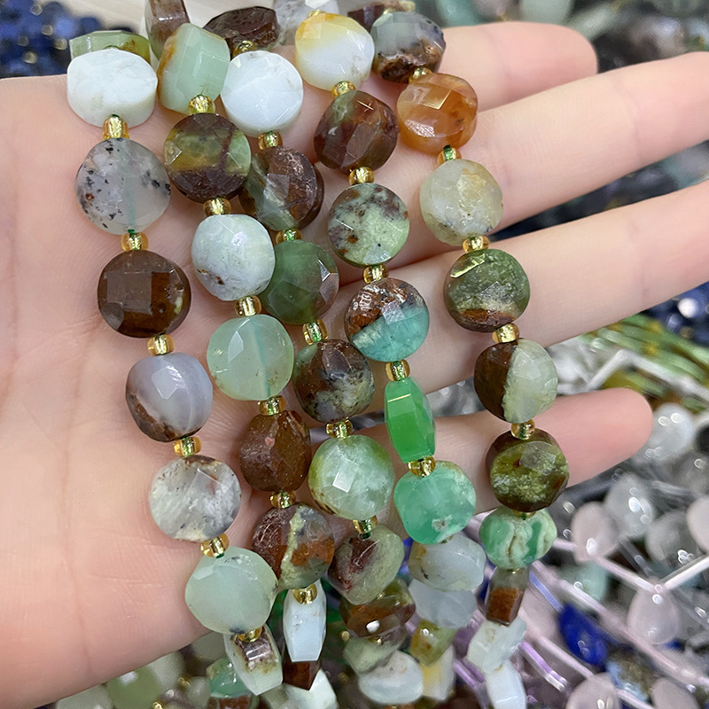 Australia Chrysoprase Bead, Australia Jade, with Seedbead, Flat Round, DIY, mixed colors, 10x10x4mm, Length:38 cm, Sold By Strand