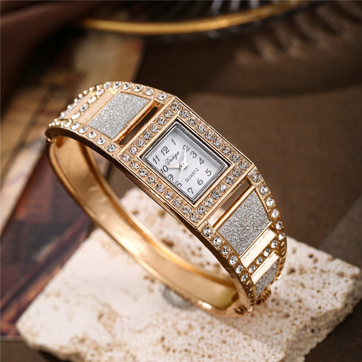 Bangle Watch, Alloy, with Glass, plated, fashion jewelry & for woman & with rhinestone, more colors for choice, Length:20 cm, Sold By PC