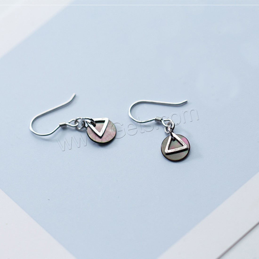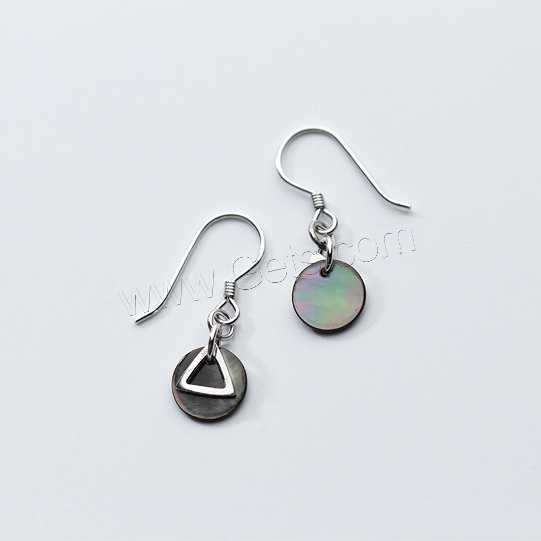 Black Shell Earring, 925 Sterling Silver, with Black Shell, Flat Round, for woman, 8x25mm, Sold By Pair