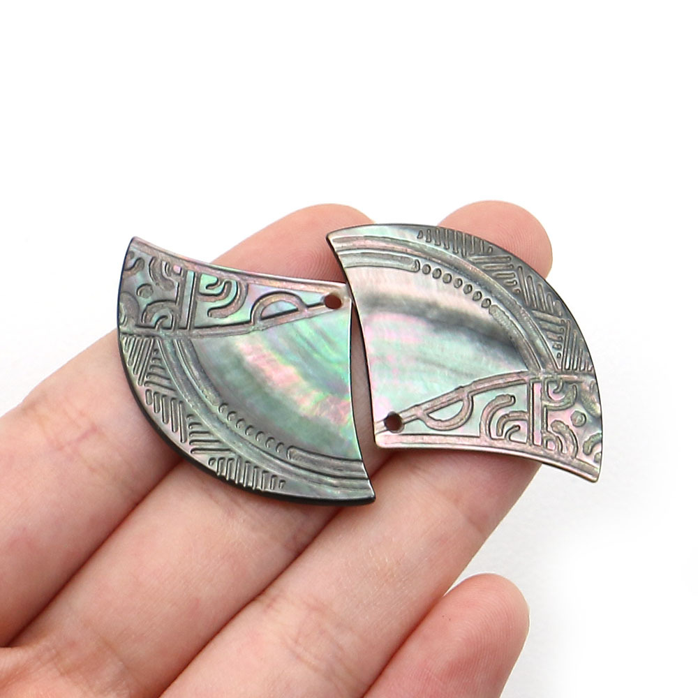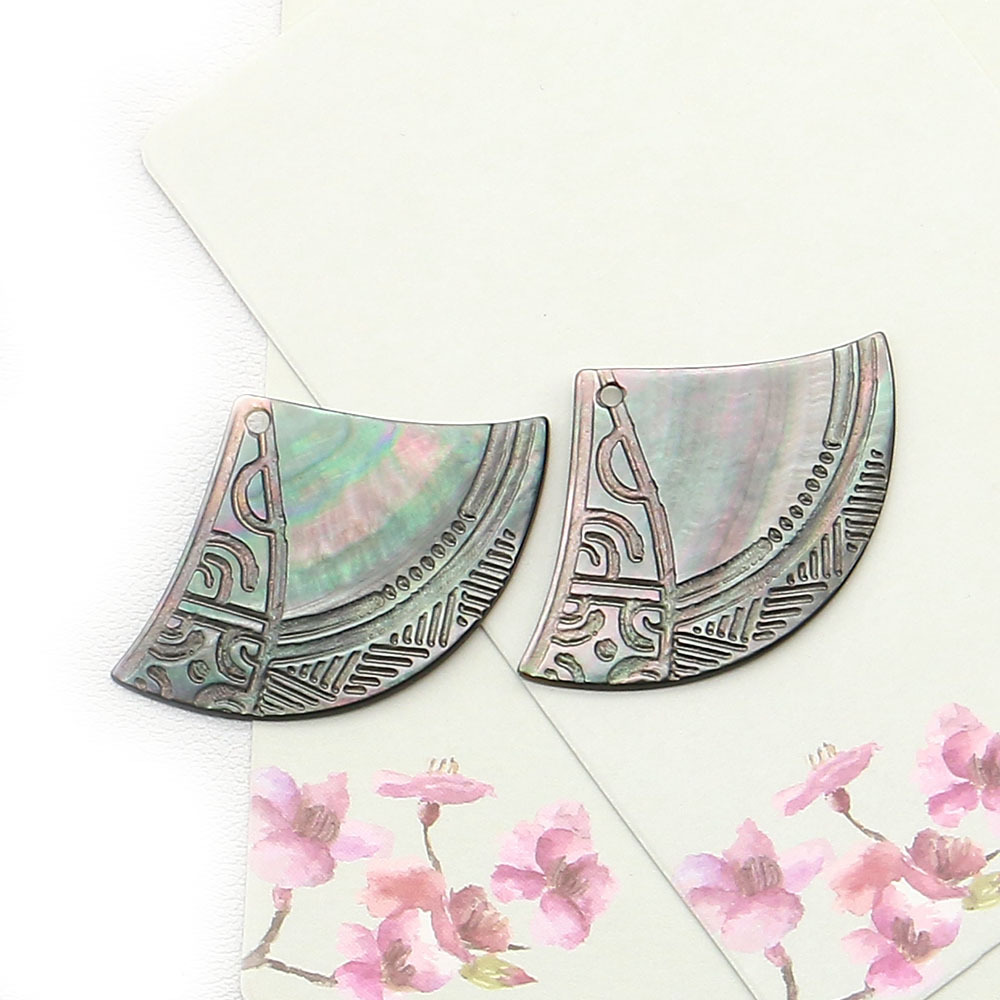Black Shell Pendant, Teardrop, Carved Approx 2.2mm