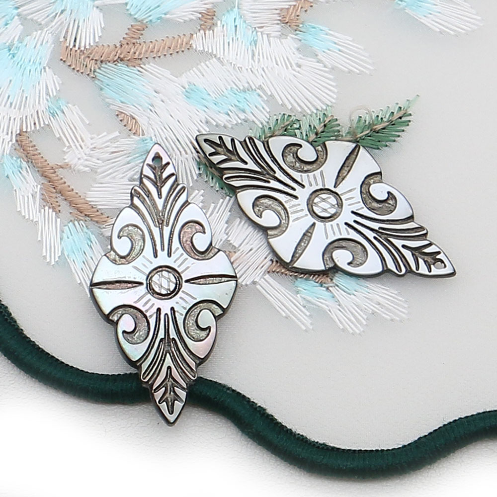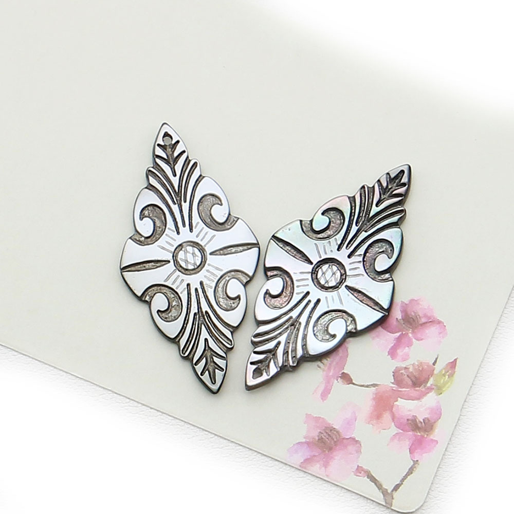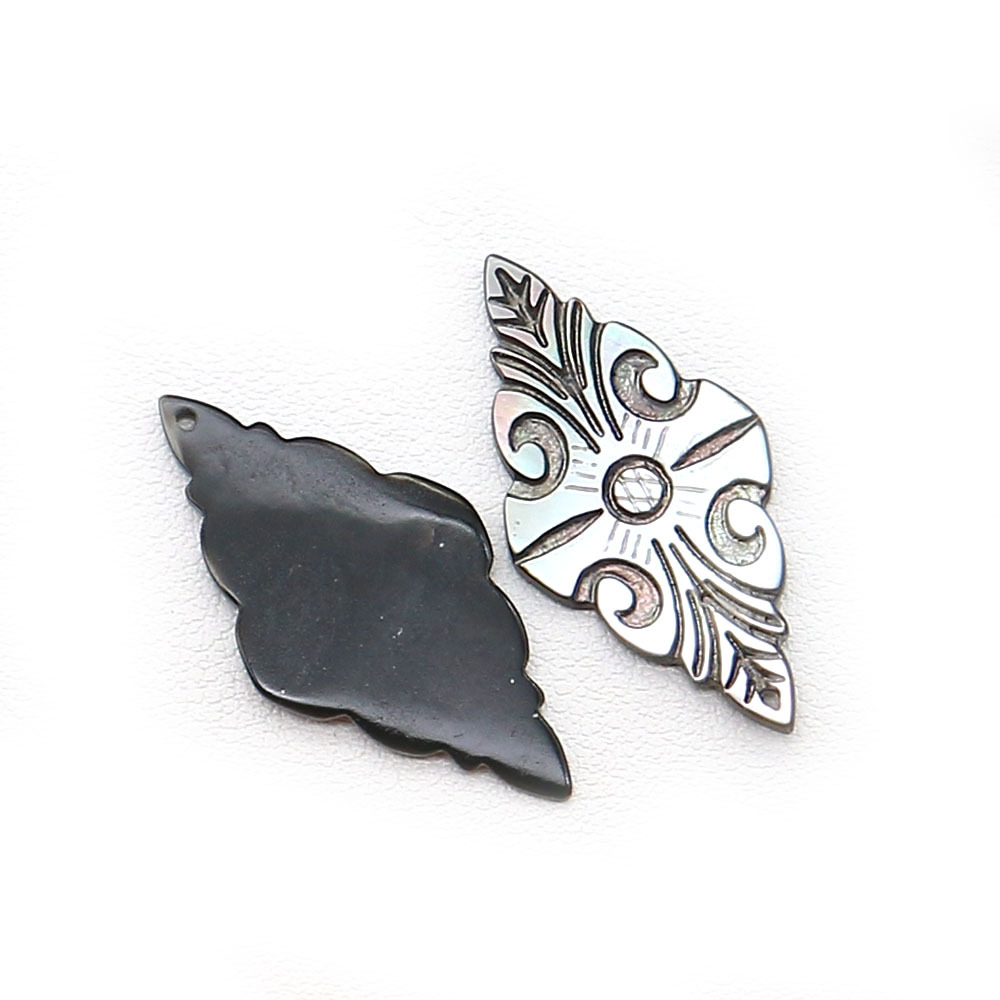 Black Shell Pendant, Teardrop, Carved Approx 2.2mm