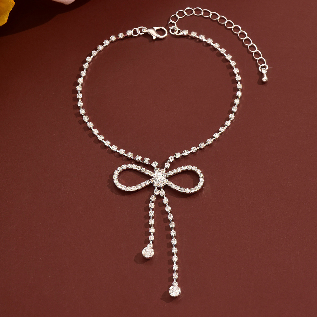 Brass Anklet, with 2.8inch extender chain, Bowknot, silver color plated, for woman & with rhinestone, Length:Approx 8.5 Inch, Sold By PC