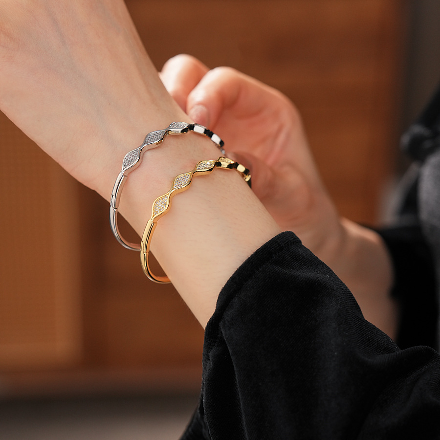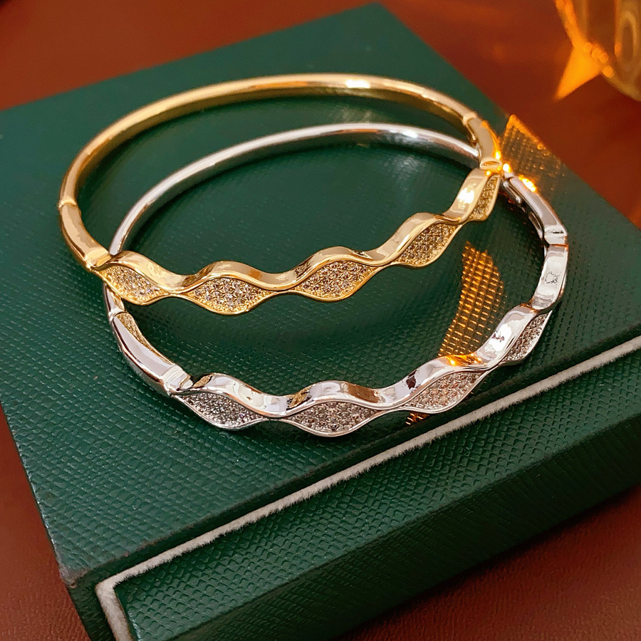 Brass Bangle, plated, micro pave cubic zirconia & for woman, more colors for choice, Sold By PC
