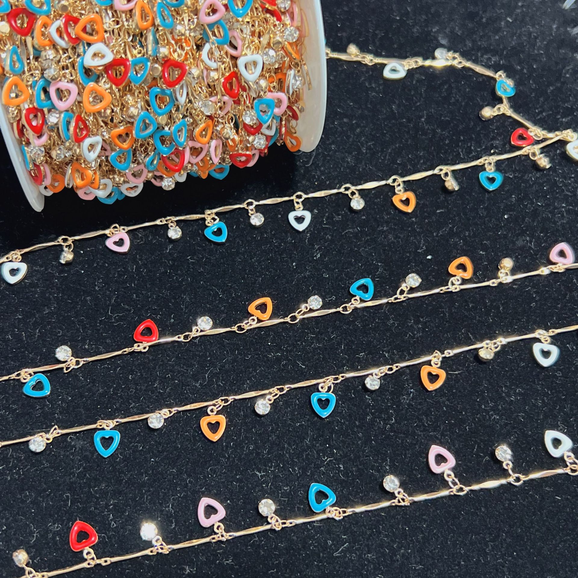 Brass Beading Chains, with plastic spool & Glass, plated, faceted