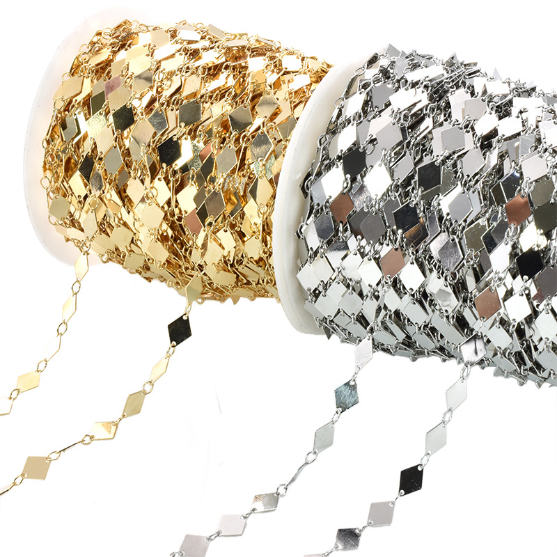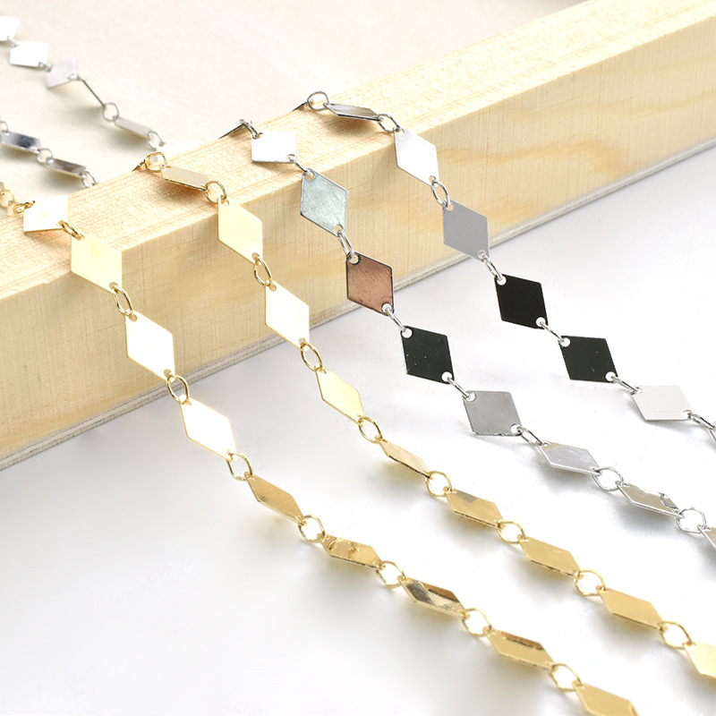 Brass Beading Chains, Rhombus, plated, DIY, more colors for choice, 9x6mm, Sold By m