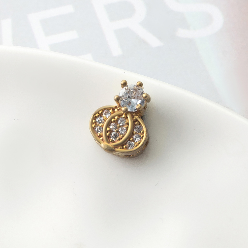 Brass Beads, plated, DIY & with rhinestone, golden, 8.8x6.2x11.2mm, Inner Diameter:Approx 1.2mm, Sold By PC