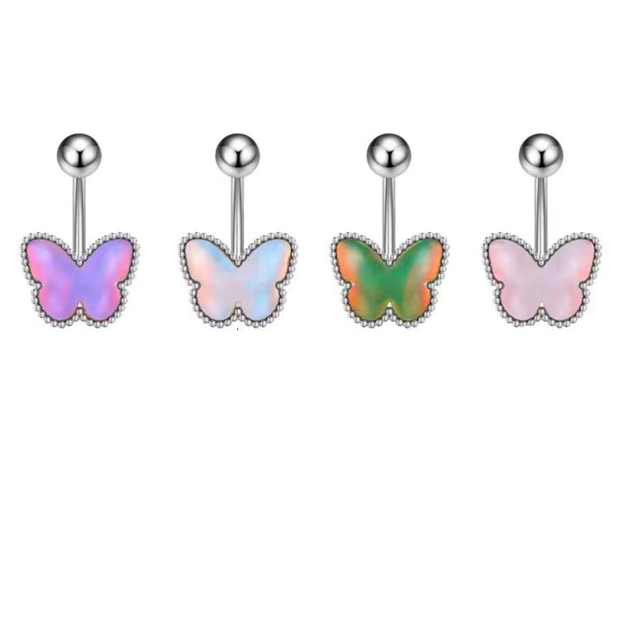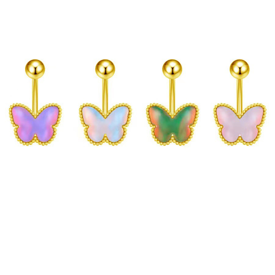 Brass Belly Ring, Butterfly, plated, for woman & enamel, more colors for choice, Sold By PC