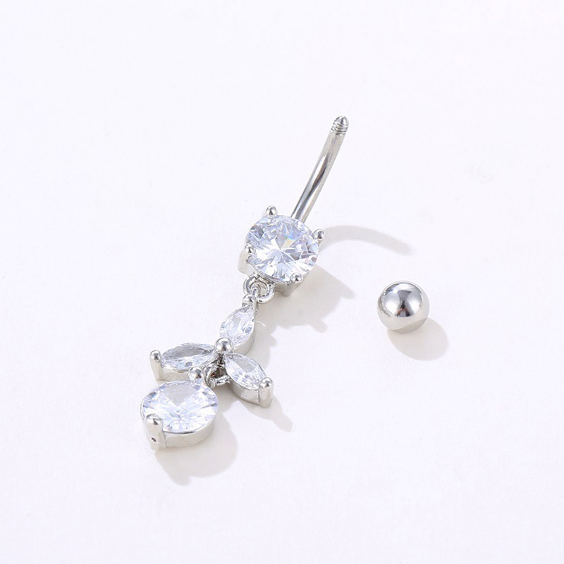 Brass Belly Ring, with 316 Stainless Steel, Unisex & micro pave cubic zirconia, belly ring length 40-50mm, Sold By PC